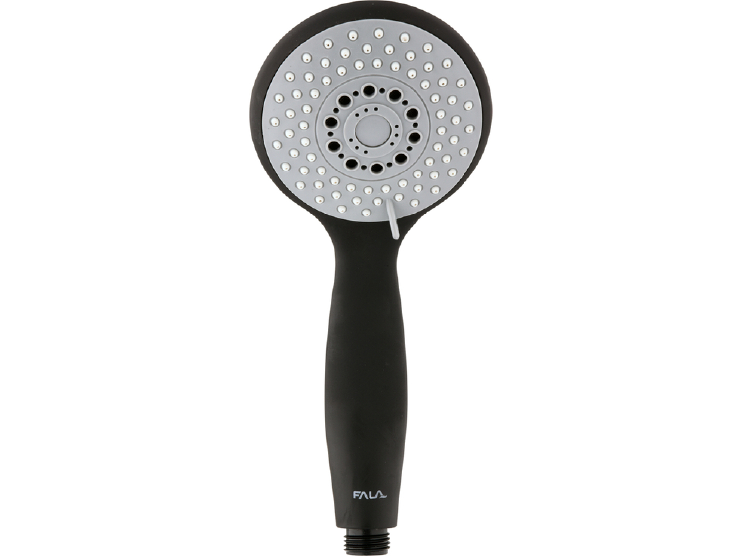 Trijų funkcijų Salto dušo rankena yra idealus sprendimas tiems, kurie nori pritaikyti savo vonios dekorą prie kitų juodos spalvos elementų.