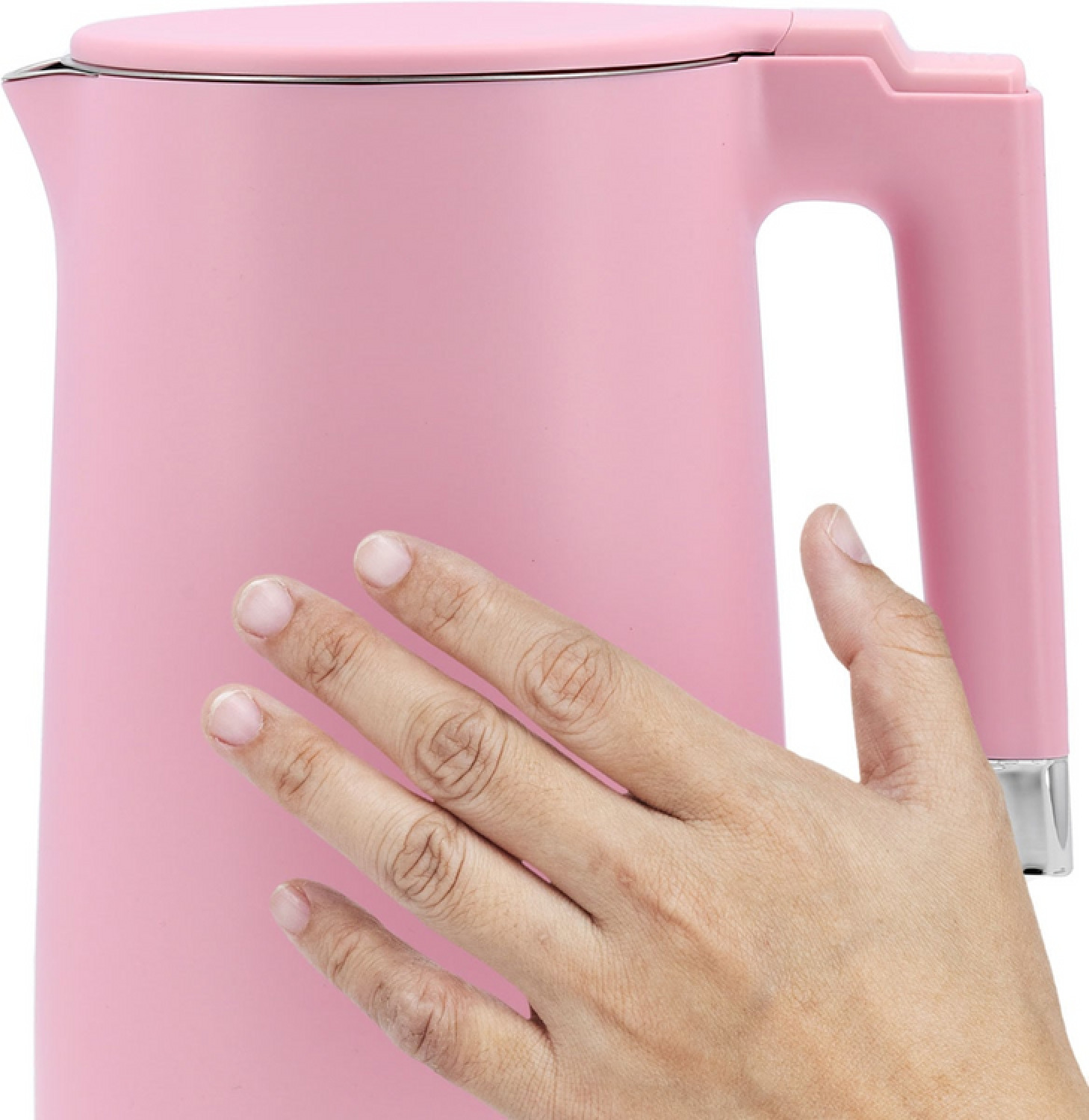 Elektrinė arbatinukė su 1,5 litro talpa. Jos minimalistinė forma ir vienoda spalva puikiai derės su šiuolaikiniais interjerais. Arbatinukės korpusas pagamintas iš dvigubų sienelių. Vidinė siena ir dangtis pagaminti iš nerūdijančio plieno, o išorė uždengta spalvotu polipropileno apvalku. Papildomos saugumo funkcijos, tokios kaip automatinis išsijungimas ir perkaitimo apsauga, užtikrina didesnį saugumą. Didelė anga palengvina vandens pilstymą ir valymą, o nuimamas tinklinis filtras užtikrina vandens švarumą.