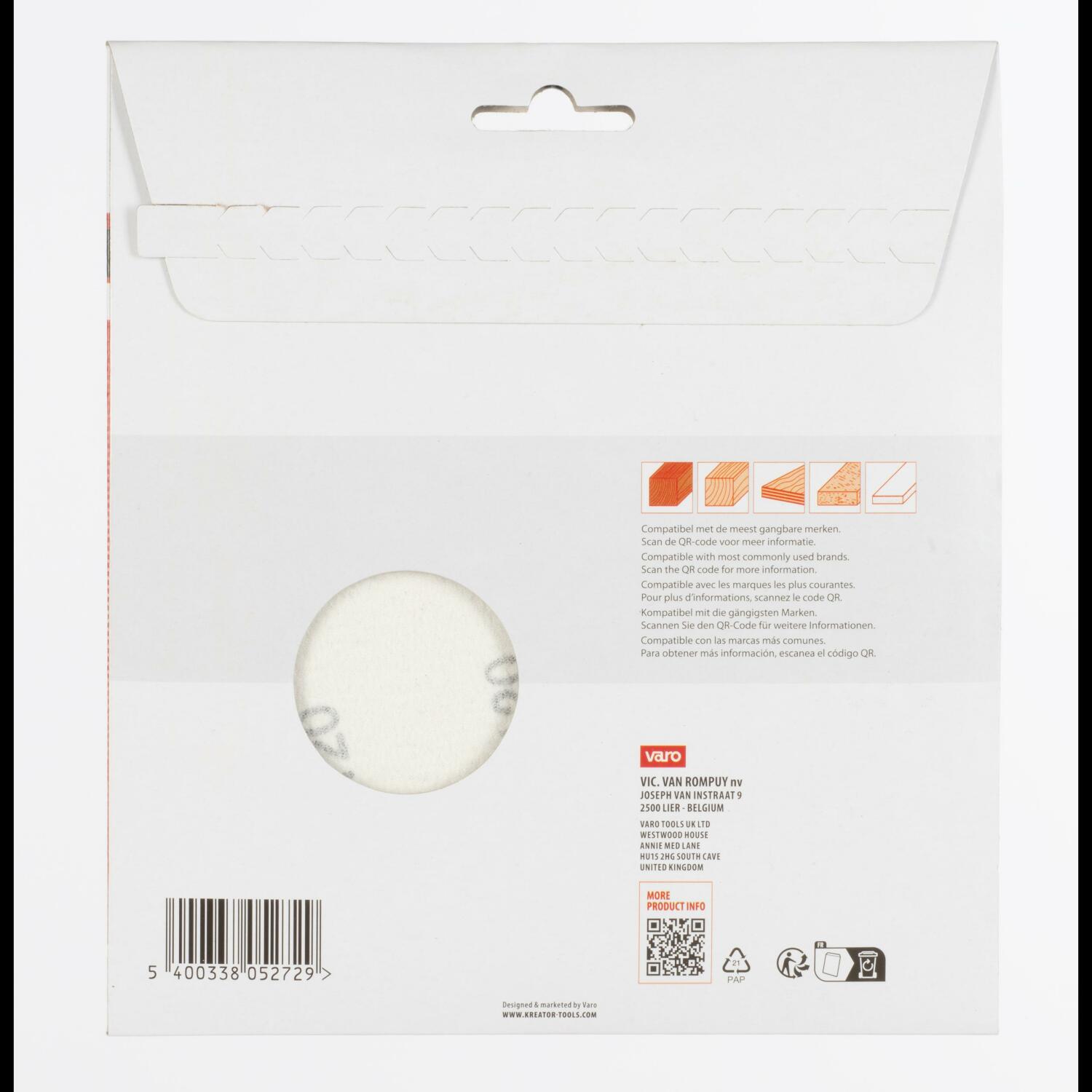 Šis 5 vnt. rinkinys KREATOR švitrinio popieriaus, skirtas kampinėms šlifuoklėms, kuriomis naudojama lipni sistema. Švitrinis popierius turi 180 mm skersmenį ir 120 grūdų, todėl puikiai tinka smulkiai šlifavimui.