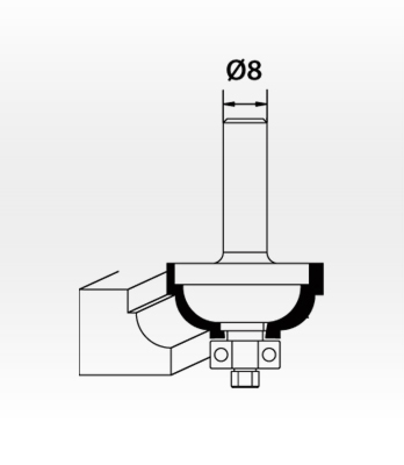 Šis kampinis frezos su lodiniu guoliu yra puikus pasirinkimas kuriant dekoratyvines profiliuotas formas arba įstrižas kraštus medienoje. Jo ilgis yra 58 mm, o štangos skersmuo – Ø8 mm.