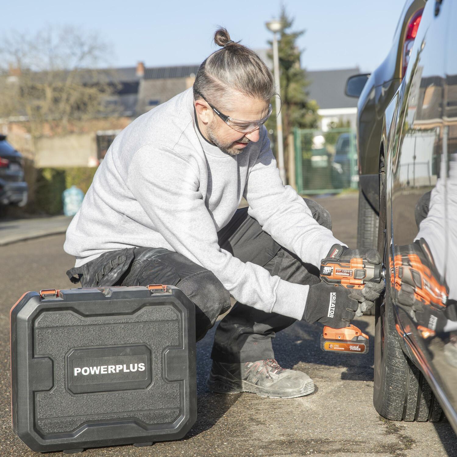 Šis bevielis 20 V smūginis veržliasukis yra puikus įrankis efektyviam veržlių ir varžtų sukimo arba atsukimo procesui. Pasikeiskite automobilio padangas kaip profesionalas su šiuo kompaktišku POWERPLUS POWDP20161 smūginiu veržliasukiu.