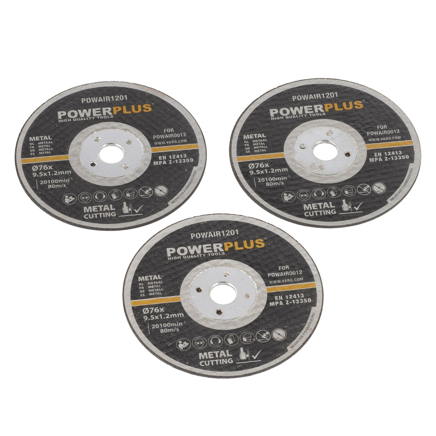 Griešanas diski 76mm - 3 gab. POWERPLUS POWAIR1201, 1 mm biezums, metāla griešanai, līdz 80 m/s