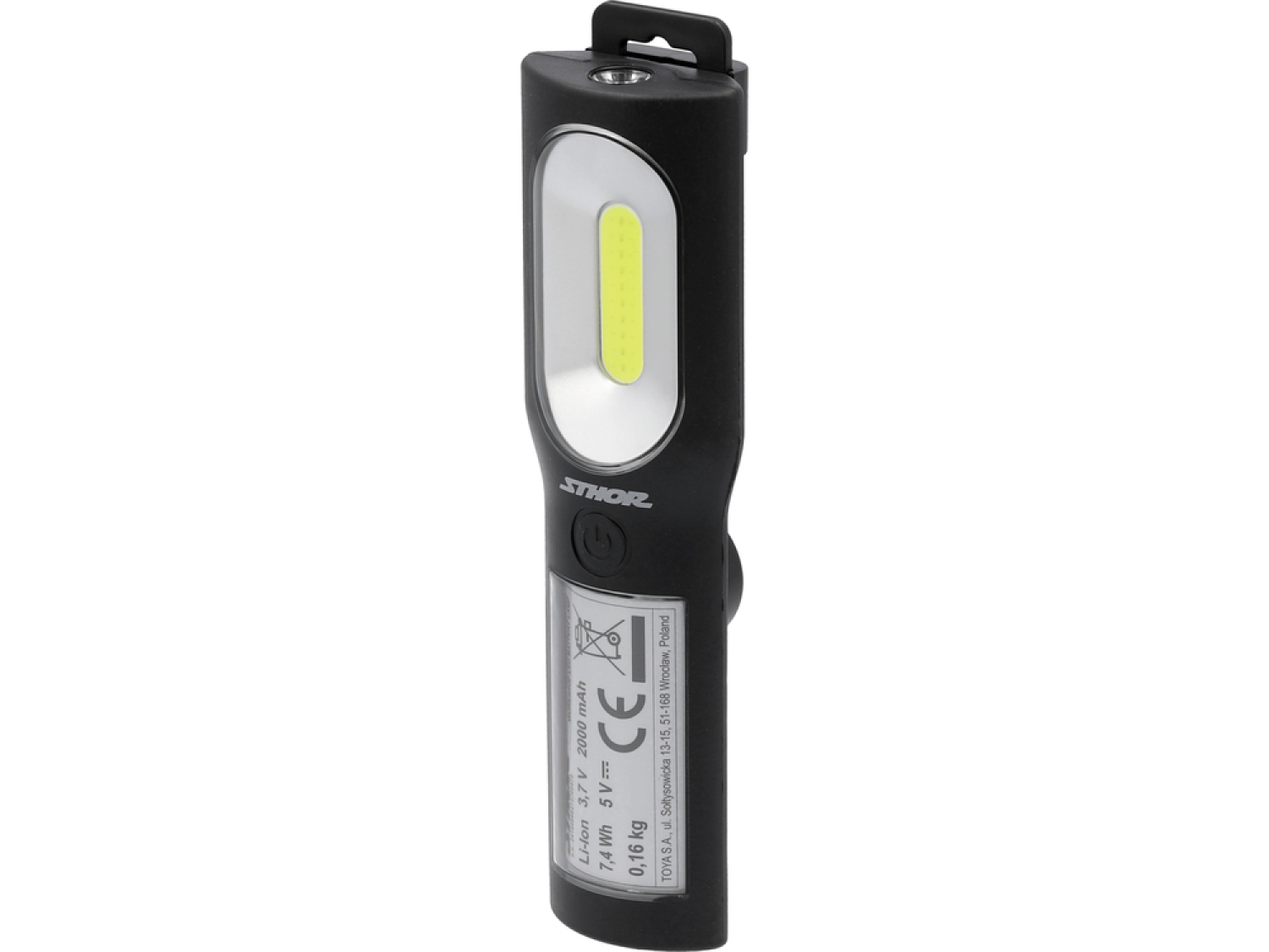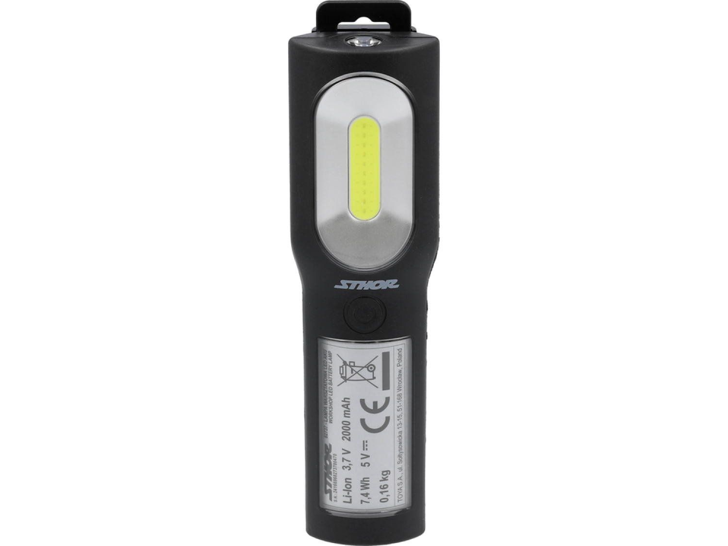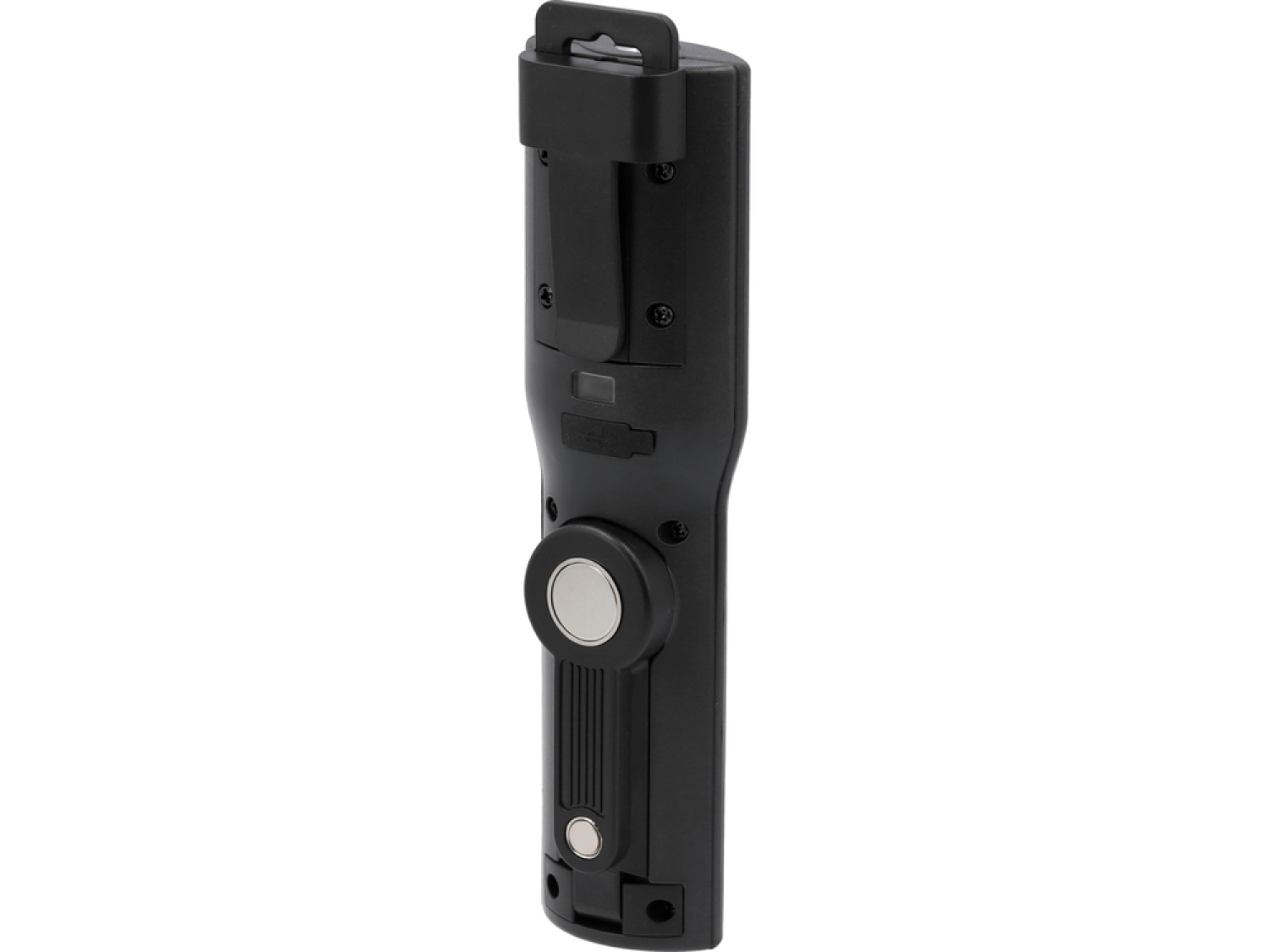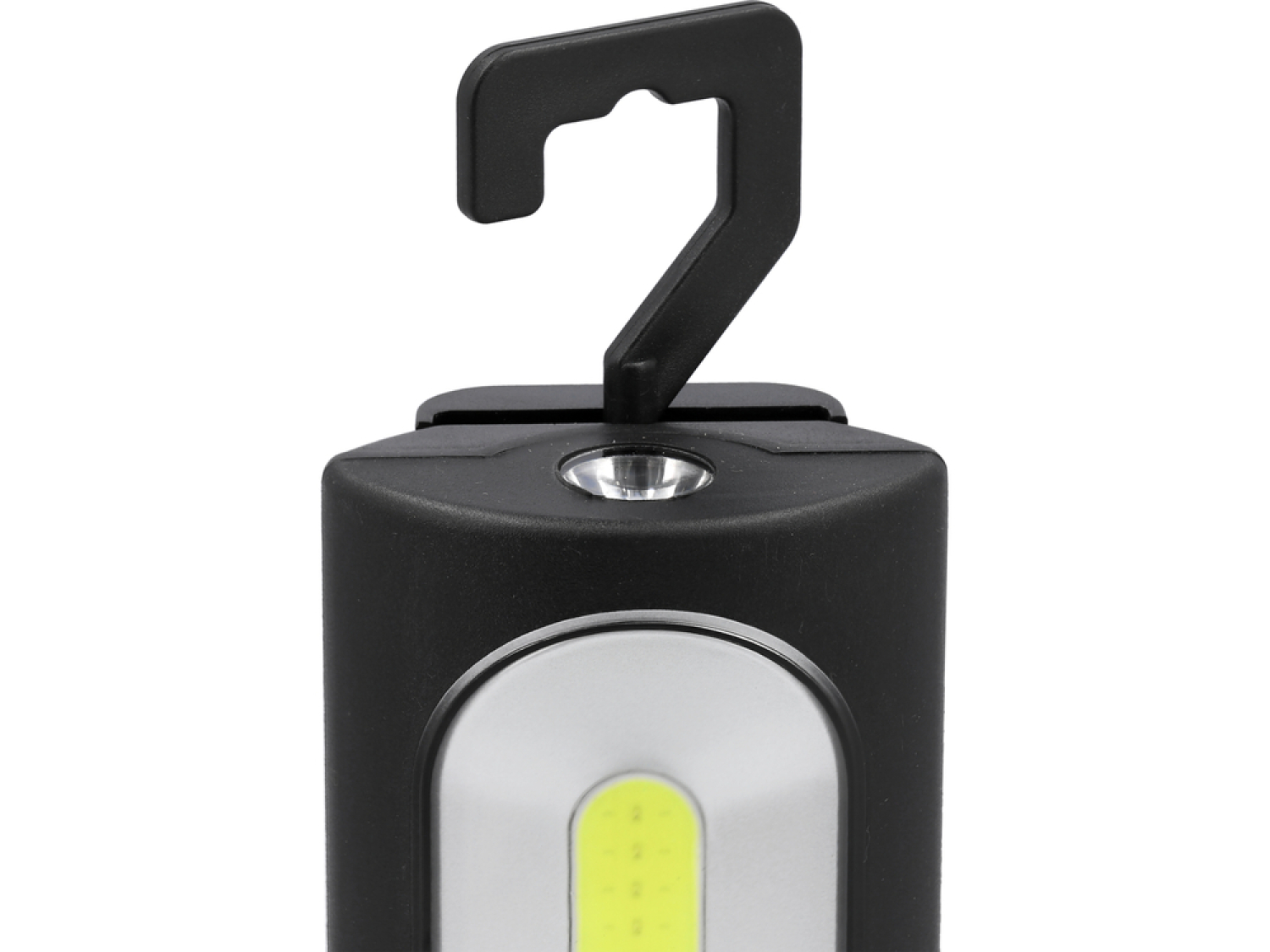 Lengvas ir nešiojamas darbo lempa su keturiais veikimo režimais, leidžiančiais pritaikyti apšvietimą pagal veiklą ir baterijos lygį. Papildomos funkcijos apima skydelį, magnetus ir kablį lempai kabinti.