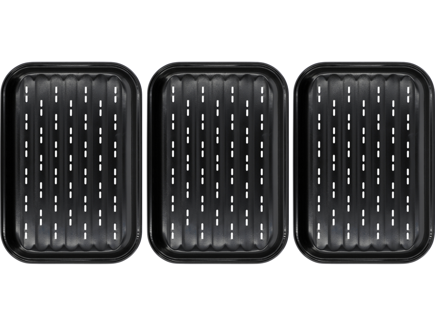 Trijų plieninių grilio indų rinkinys su neslystančia danga. Skirtingai nuo vienkartinių aliuminio indų, šis neslystantis grilio indas yra pakartotinai naudojamas ir aukštoje temperatūroje neišskiria kenksmingų medžiagų. Tai sveikesnė ir ekologiškesnė alternatyva, leidžianti mėgautis grilio patiekalų skoniu be jokių kompromisų.