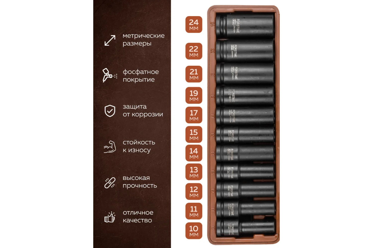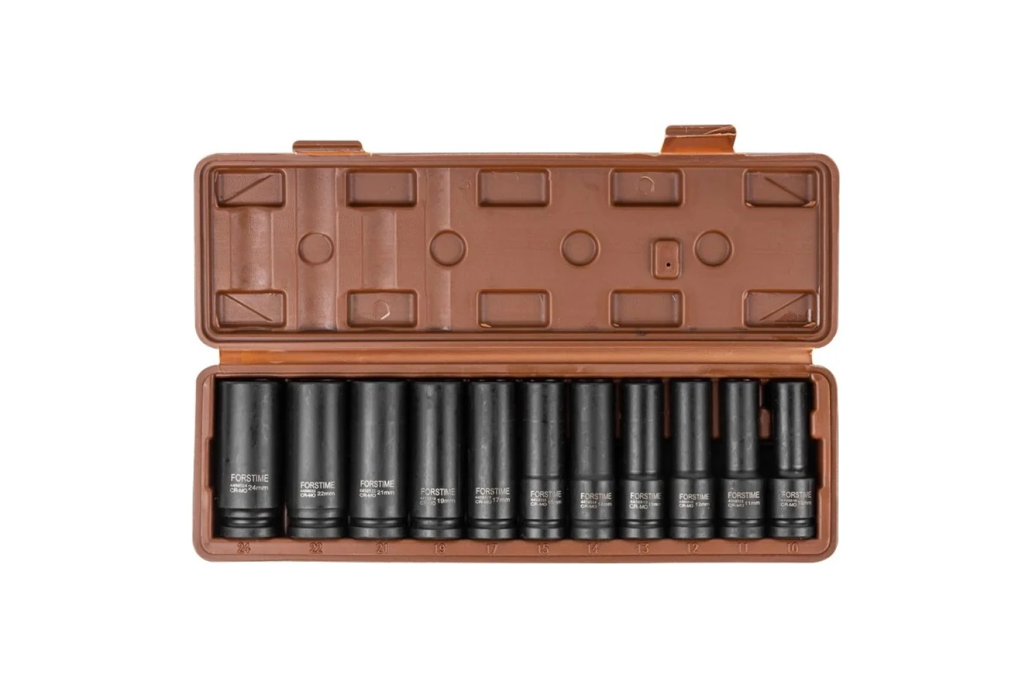 Smūginių galvučių rinkinys, FORSTIME, FT-4117-5MPB, 1/2" DR, 10-24 mm, chromo-molibdeno plienas, 11 vnt.
