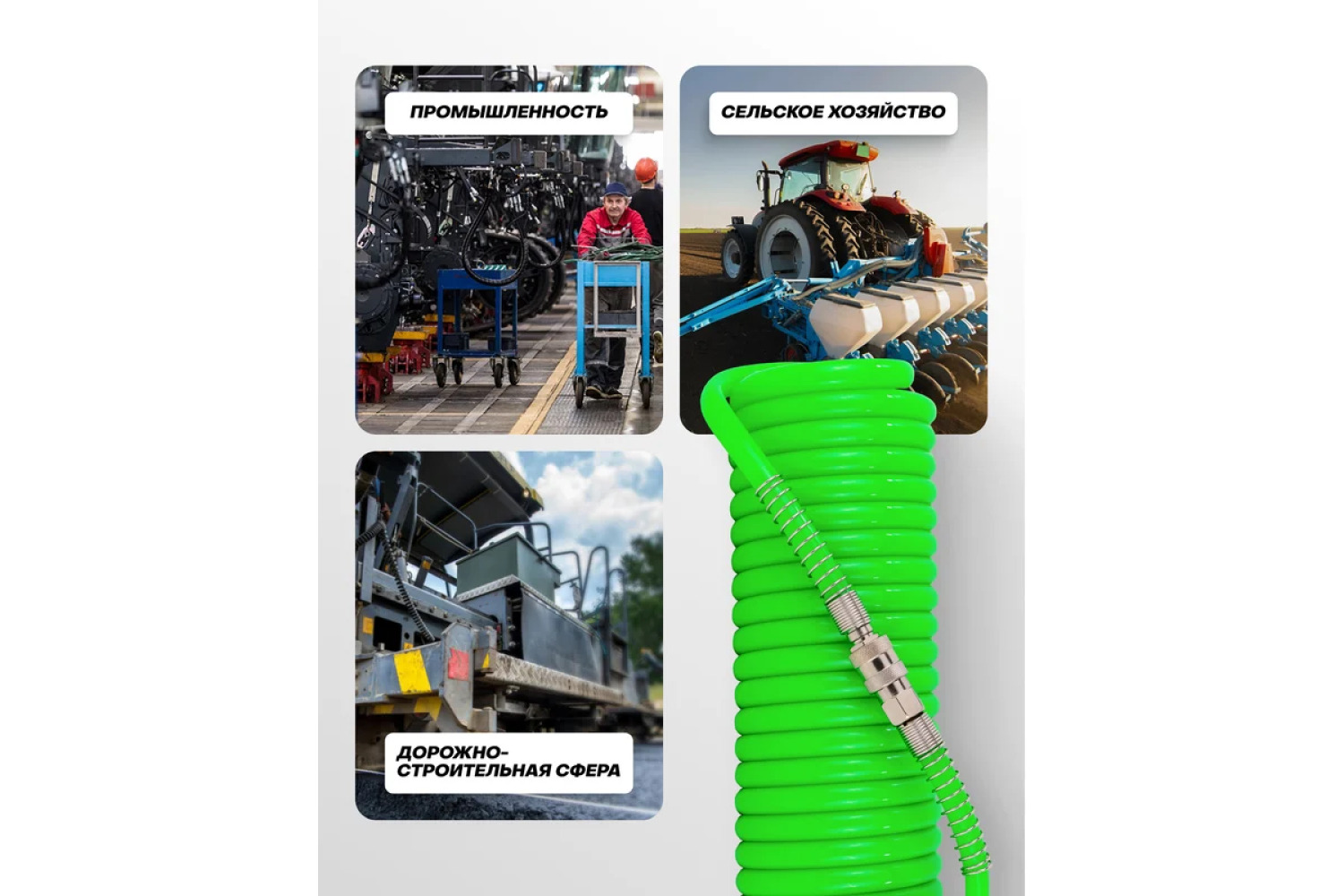 Spiralinė oro žarna sukurta taip, kad atlaikytų kasdienio darbo sunkumus, ypač automobilių dirbtuvėse ir automobilių plovyklose, kur aktyviai naudojami pneumatinių įrankiai (siurbliai, veržliarakčiai, pistoletai ir mašinos). Ji taip pat naudojama statybose ir pramonėje, todėl yra nepakeičiamas pagalbininkas įvairiose užduotyse.