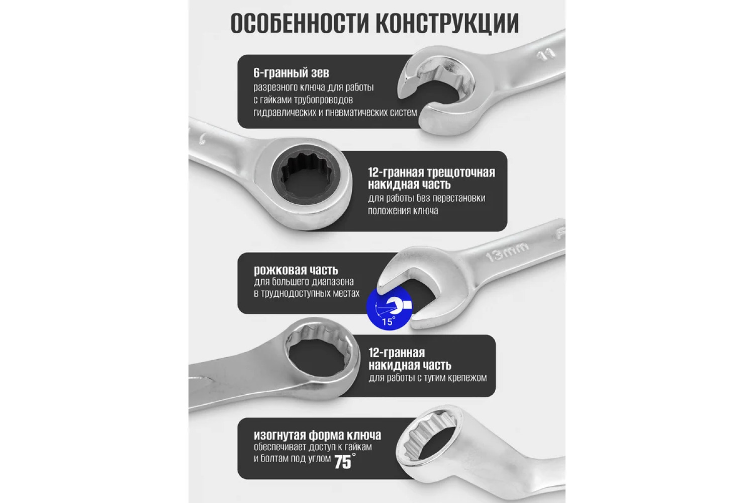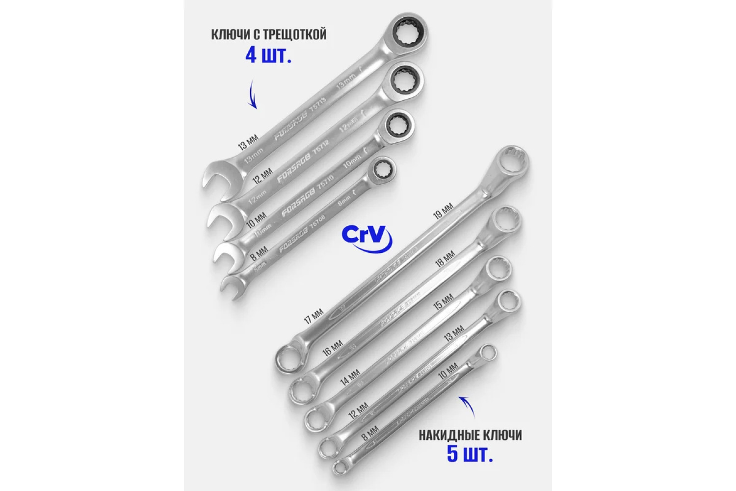 Universalus raktų rinkinys iš prekės ženklo FORSAGE, modelio kodas F-5148R, apima kombinuotus, atlenkiamus ir trūkčiojančius raktus įvairių dydžių, todėl jis yra puikus pasirinkimas dirbti automobilių dirbtuvėse, garažuose ir statybos aikštelėse.