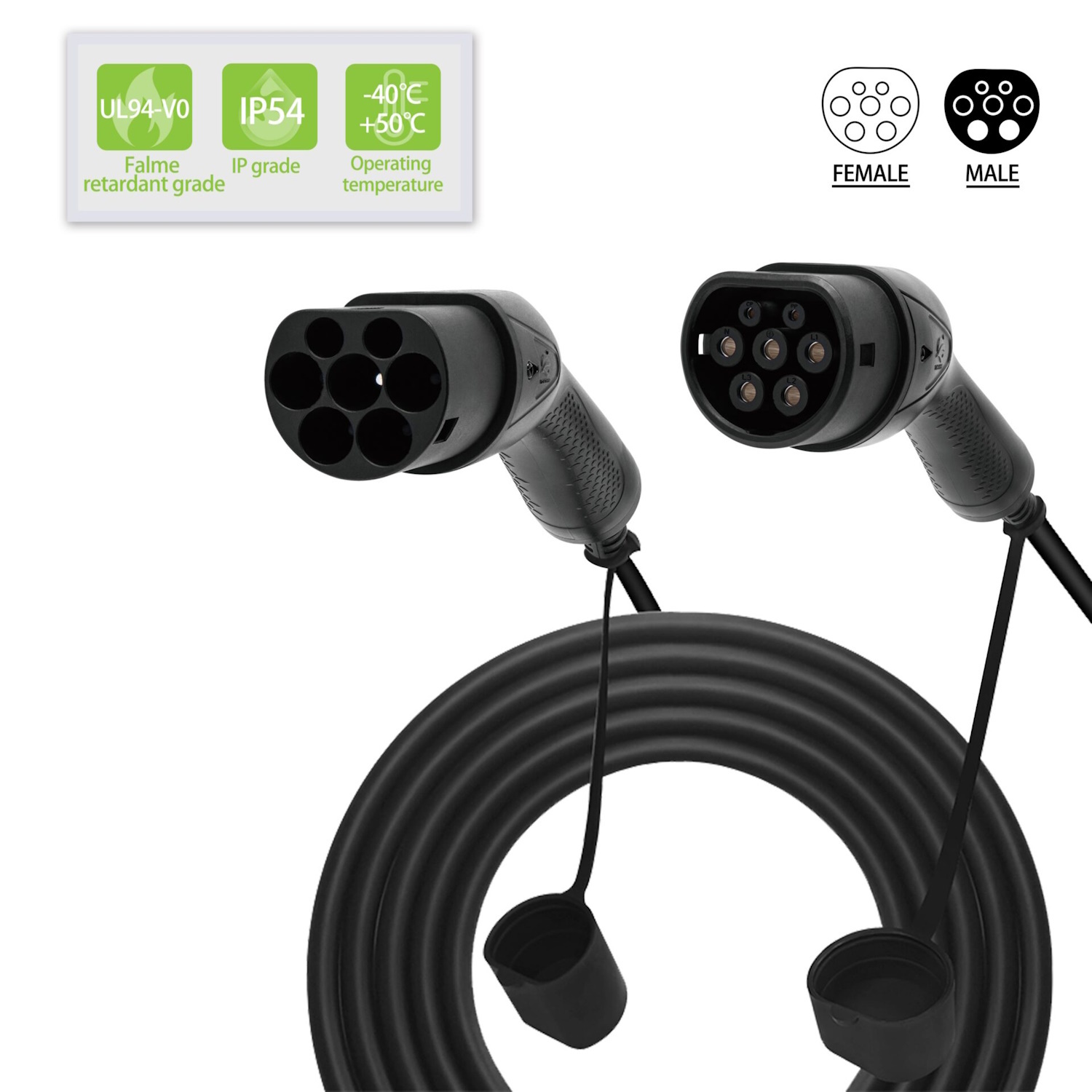 - Jungties tipas: Type 2 Male ➝ Type 2 Female (IEC 62196-2)