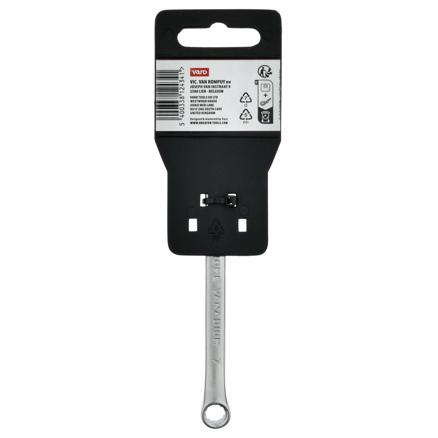 Šis kombinuotas raktas su atviru ir žiediniu galu pagamintas iš tvirto chromo-vanadžio. Elipsės formos ašis užtikrina geresnį jėgos perdavimą. Jo ilgis yra 111 mm, o žiedo dydis - 7 mm.