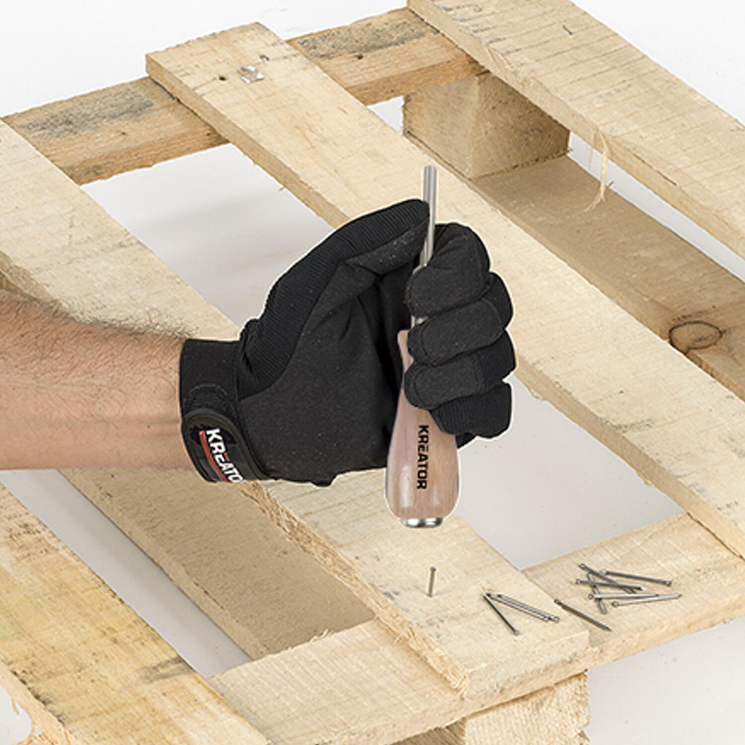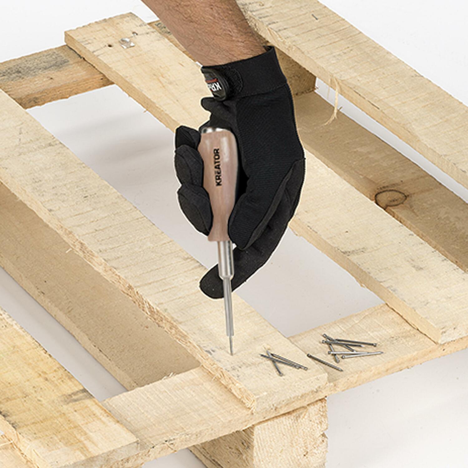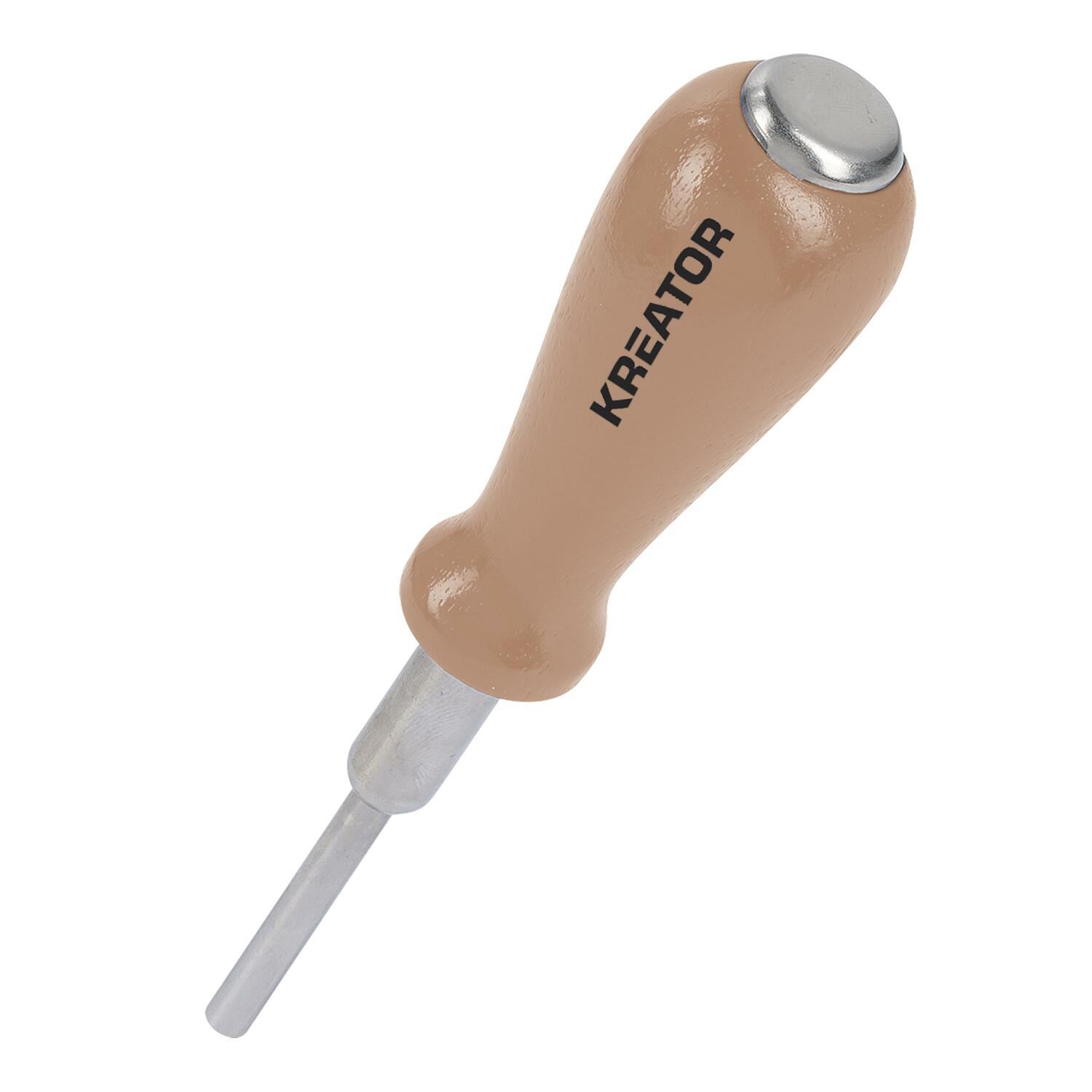 Magnetinis vinių vairuotojas KREATOR 4mm yra puikus įrankis vinių kalimui. Jis turi medinę rankeną, leidžiančią patogiai kalti vinis, o įmontuotas magnetas užtikrina, kad vinys nenukristų ir visada būtų po ranka.