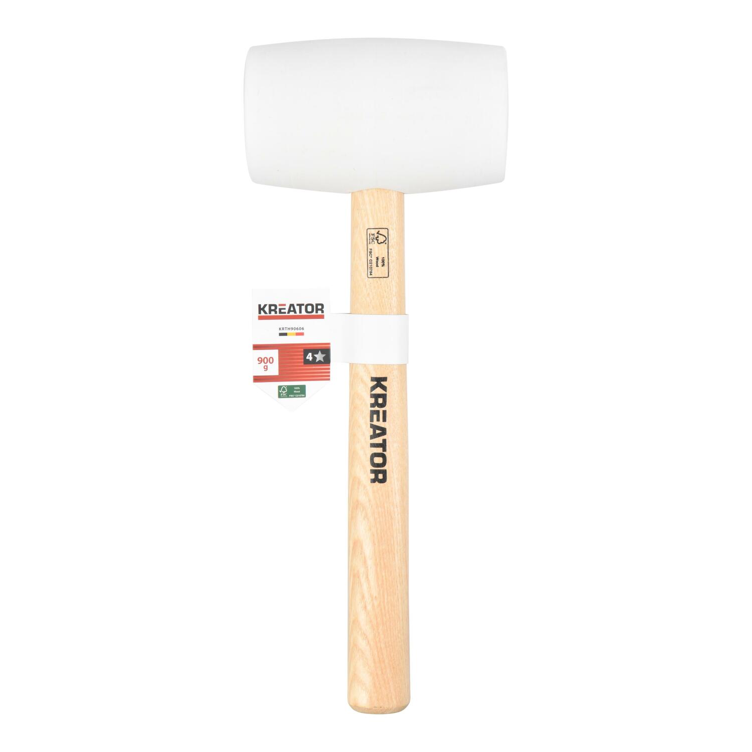 Šis baltas guminis kūjis iš KREATOR, turi ergonomišką rankeną, kurios ilgis yra 260 mm, pagamintas iš FSC® sertifikuoto medžio. Kūjis sveria 0,9 kg ir yra ideali priemonė plytelių arba (natūralaus) akmens montavimui. Balta guminė galva nepalieka jokių žymių ant jūsų plytelių.