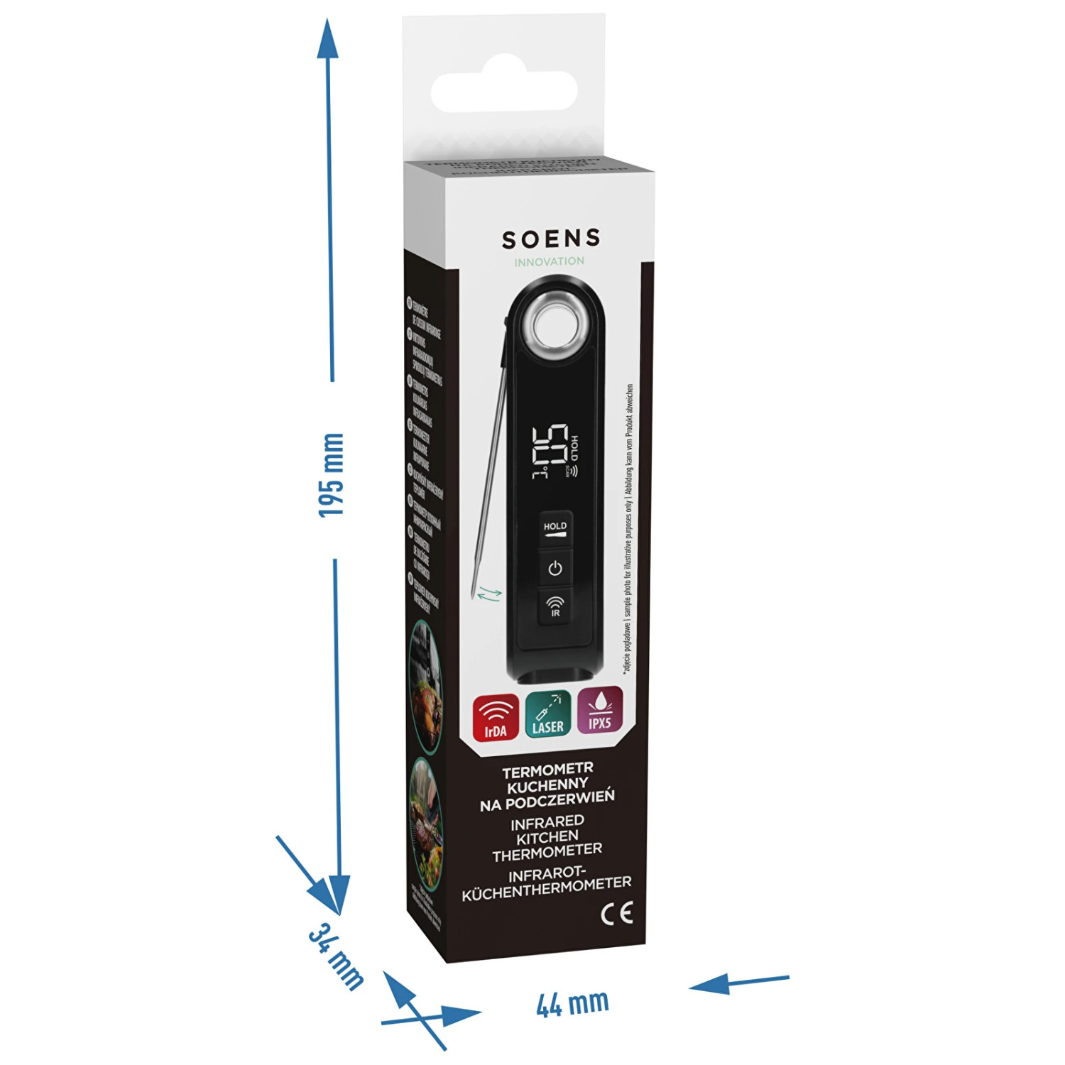 Šis modernus prietaisas palengvins jums tobulų patiekalų paruošimą, teikdamas tikslią temperatūros matavimo informaciją ir patogumą bet kurioje virtuvėje. Greitai įvertinsite dvigubas matavimo galimybes, pasirinkimą tarp Celsijaus ir Farenheito laipsnių, tikslų taikymą dėka lazerinio taikiklio, greitą ir tikslų temperatūros matavimą bei lengvai skaitomą LCD ekraną.