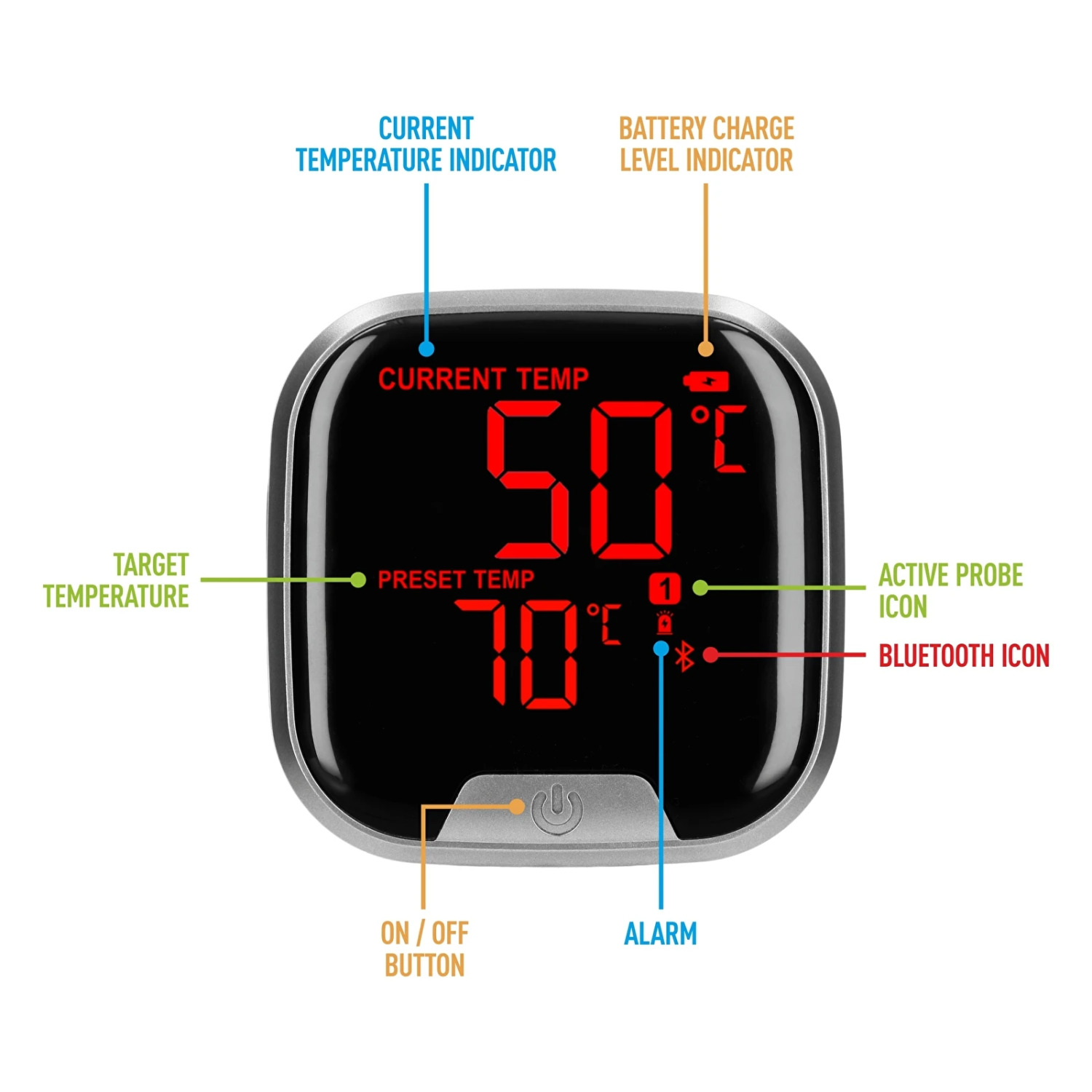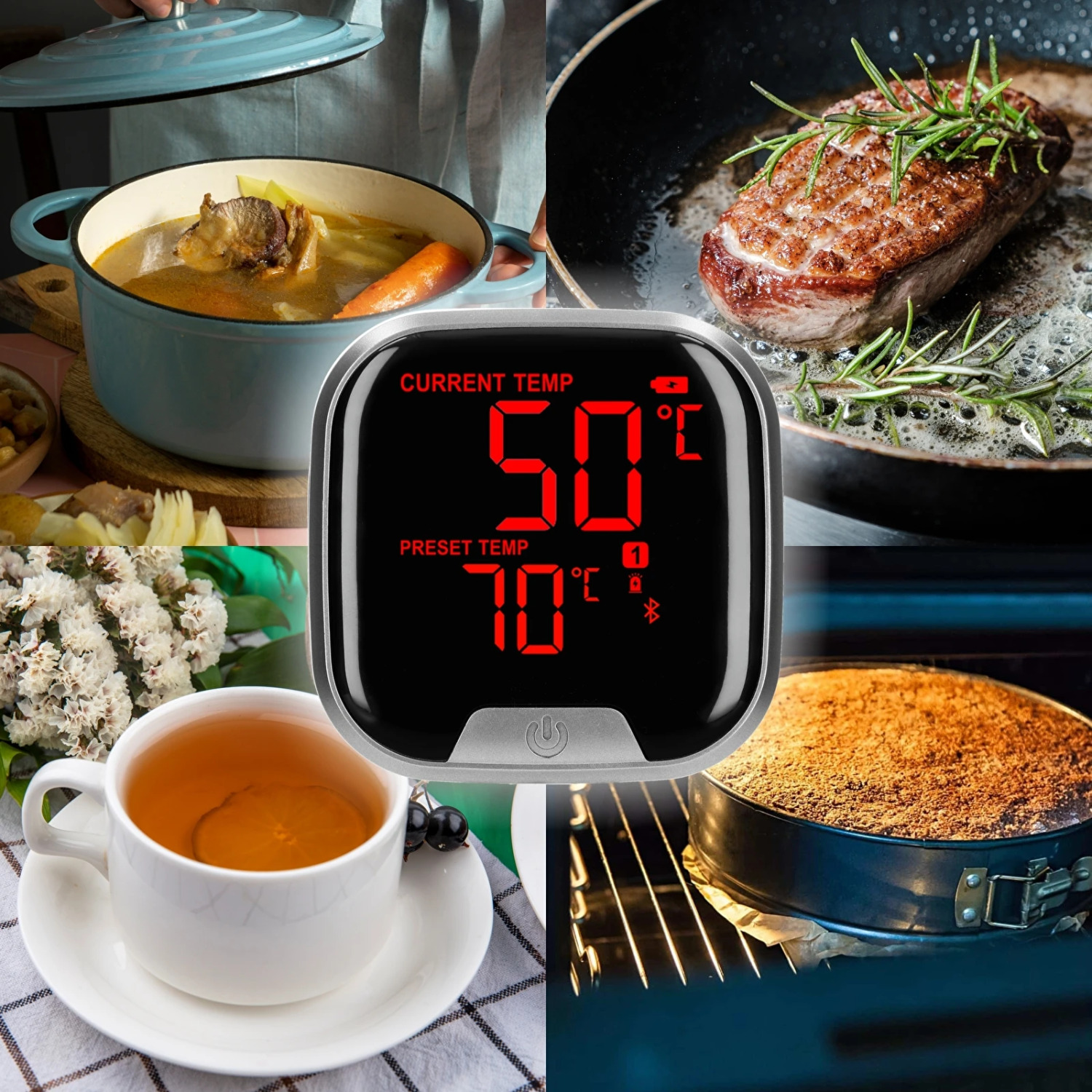 Patobulinkite savo kepimo patirtį naudodami modernų virtuvinį termometrą su Bluetooth! Patogiai patikrinkite savo maisto temperatūrą iš bet kurios namų ar kiemo vietos.
