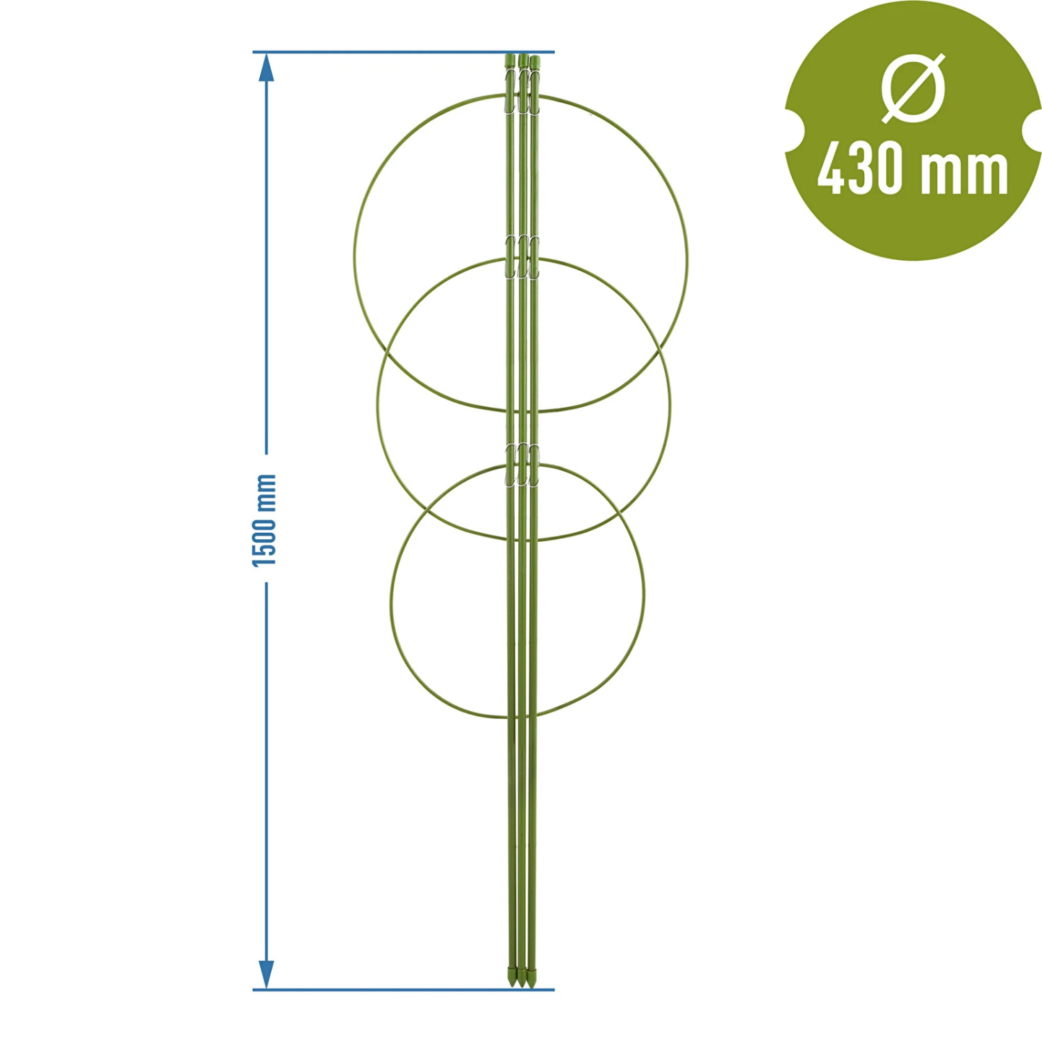 Ši metalinė parama su 3 žiedais ir 3 stulpeliais idealiai tinka gėlių ir daržovių augalams paremti. Įrengus, ji apjuosia augalą, apsaugodama jį nuo lenkimo ir lūžimo.