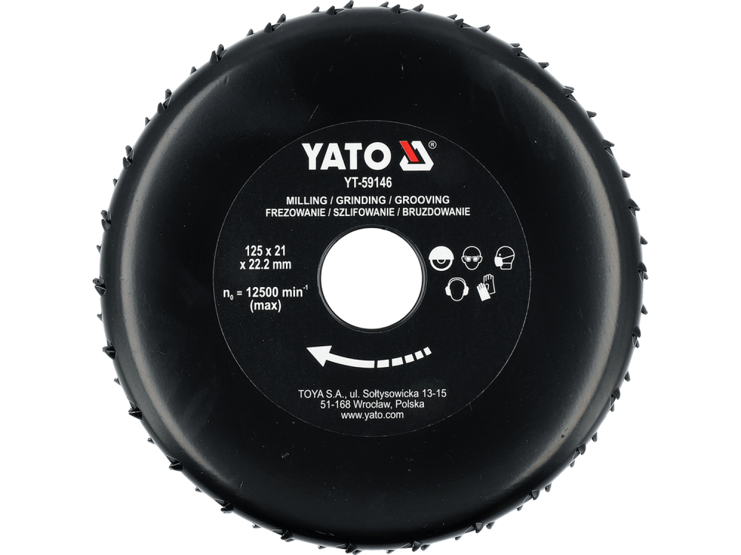 Pjūklo Rasp Diskas, YATO, YT-59146, 125 mm, 12500 min⁻¹, 22.2 mm, 21 mm, Anglinis plienas, Mediena, Akytasis betonas, Gipskartonis