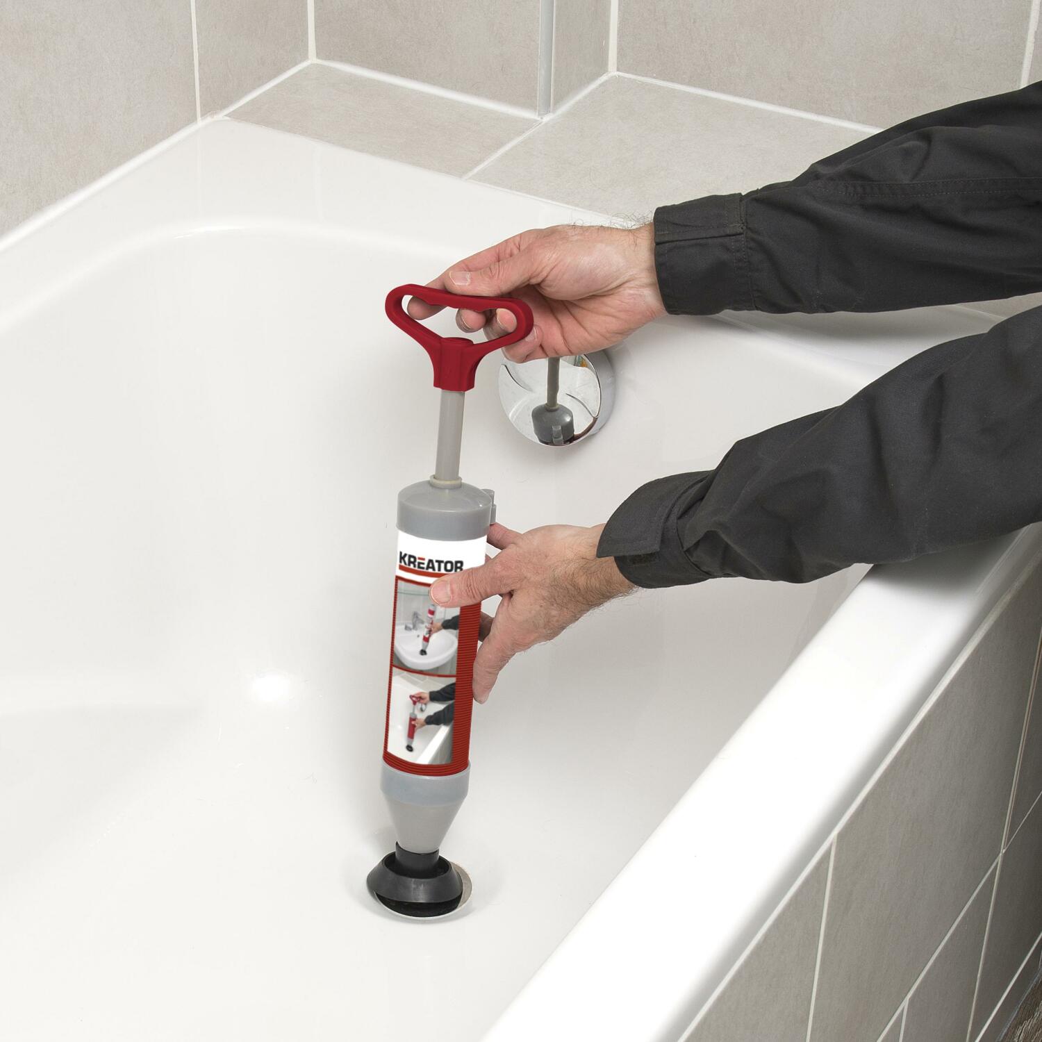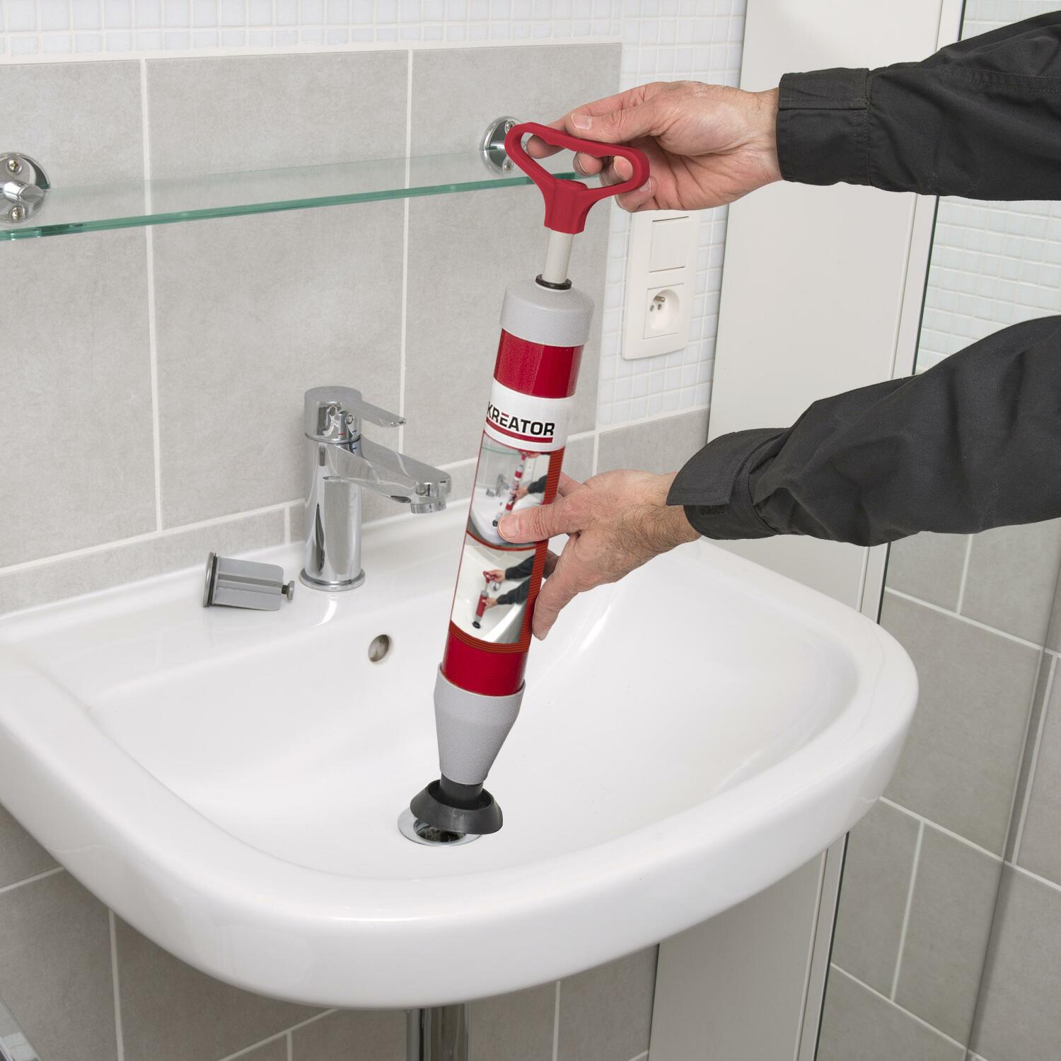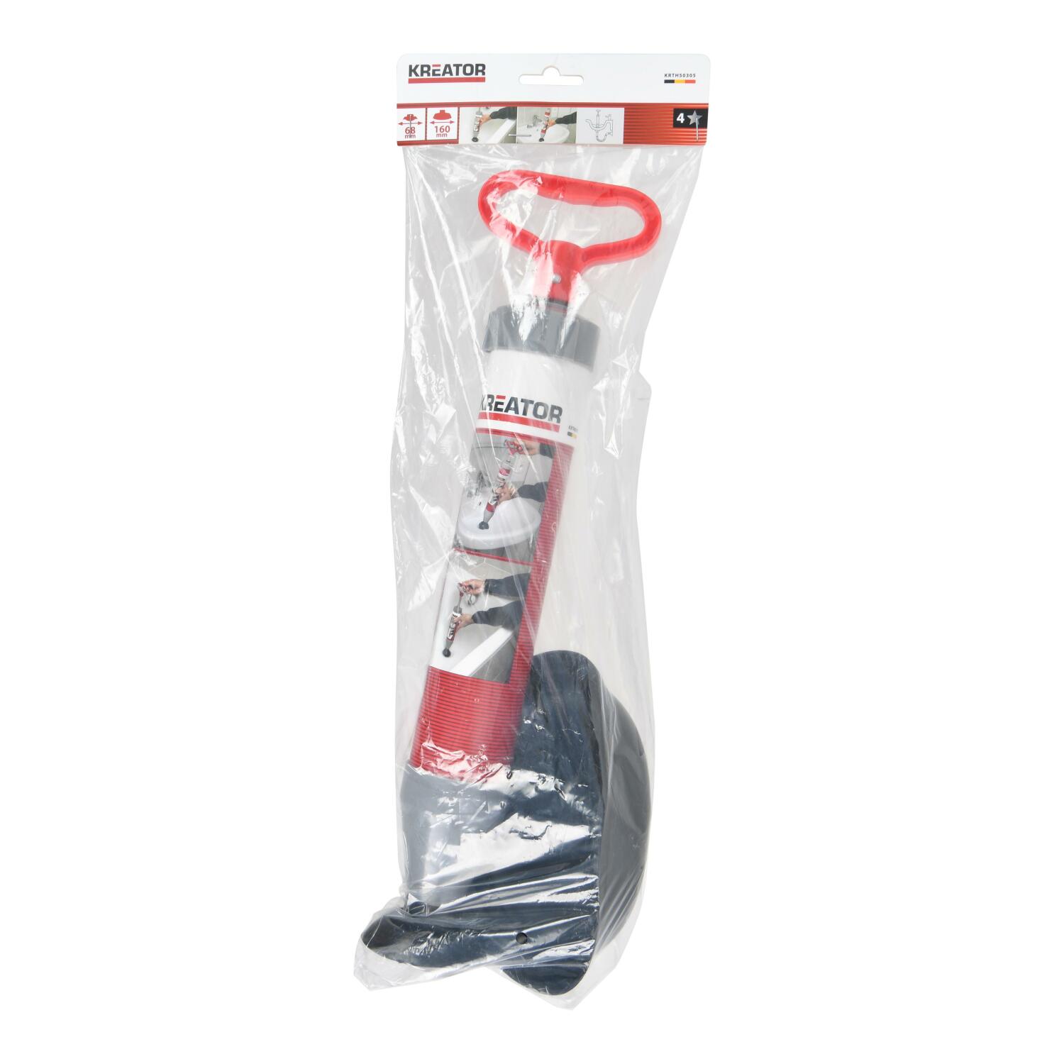 Vakuuminis siurblys su stūmokliu, Kreator KRTH50305, greitai, efektyviai ir saugiai atblokuoja bet kokį nuotekų vamzdį. Siurblys turi dvi skirtingas siurbimo puodelius, kurių skersmuo yra 68 mm ir 160 mm.