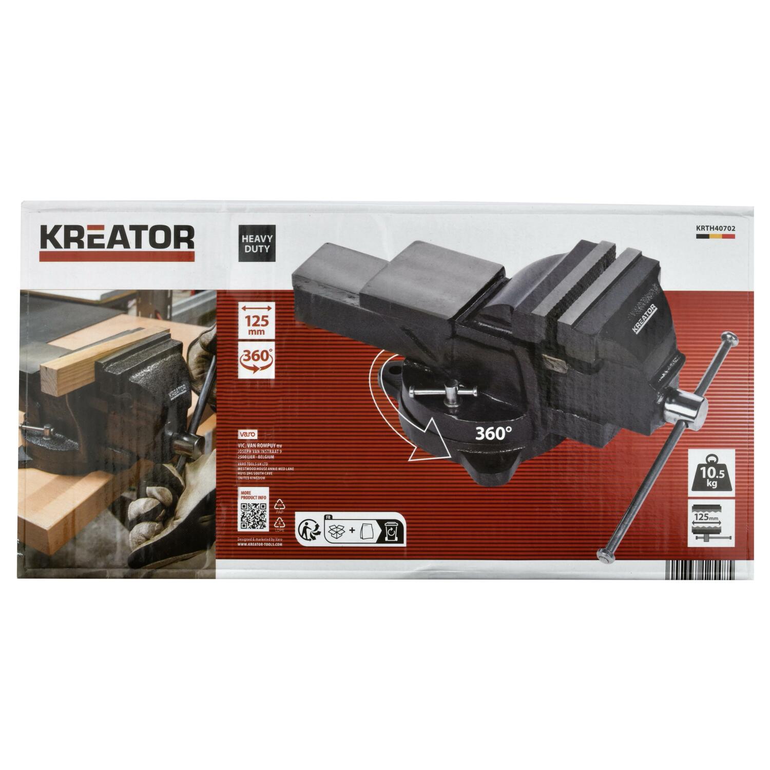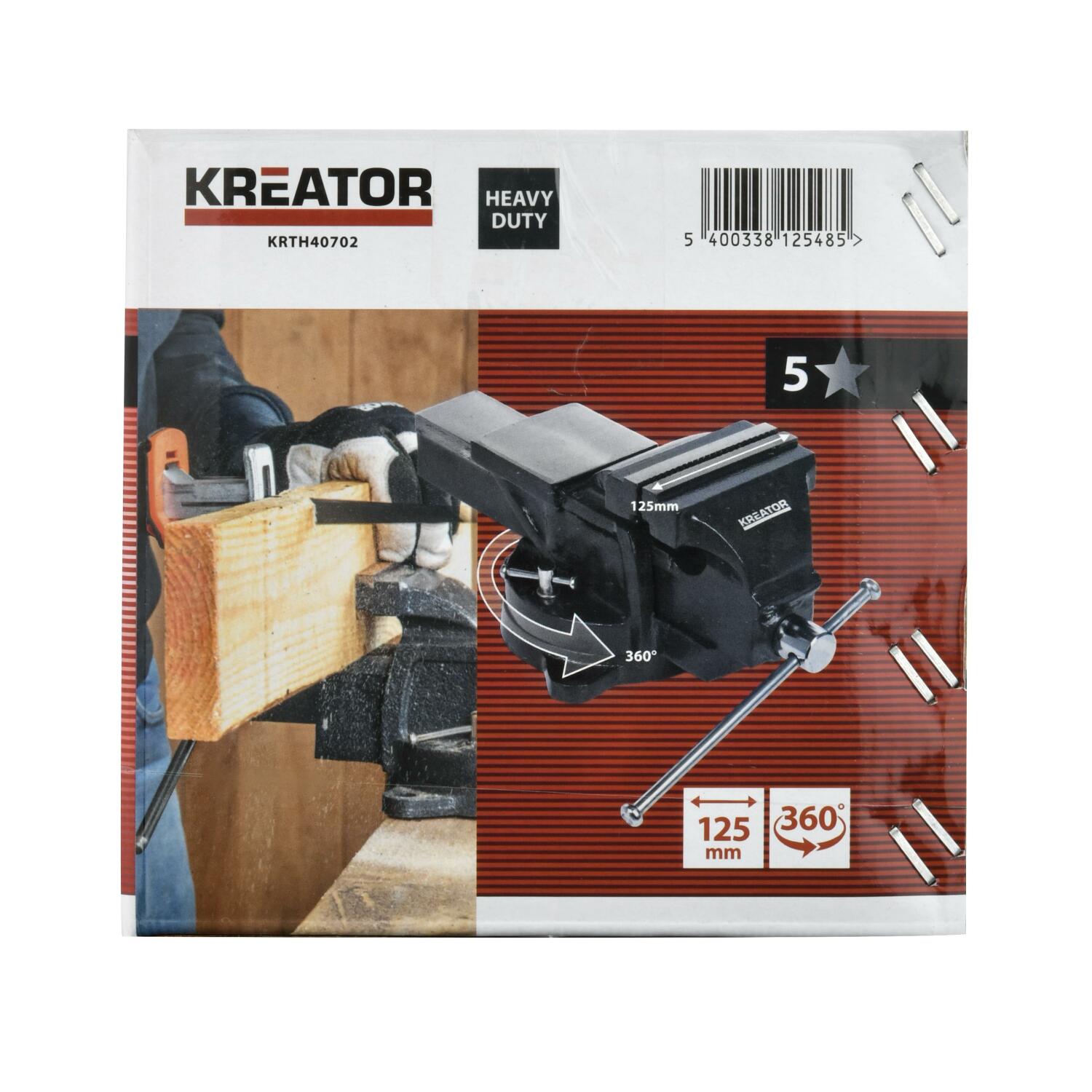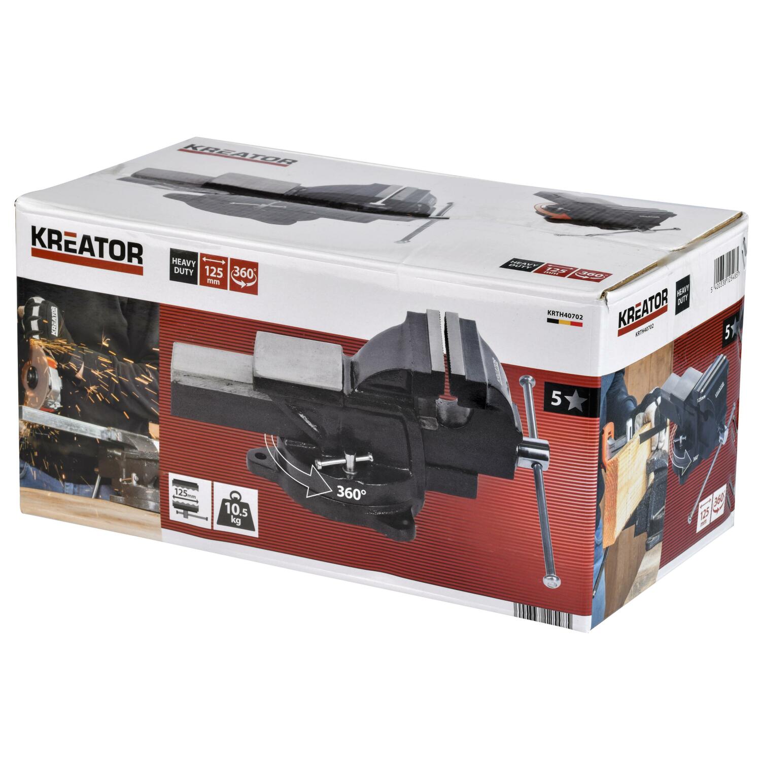 Pasukamas darbastalio spaustuvas Kreator KRTH40702 daro jūsų darbą saugesnį ir lengvesnį. Naudokite jį prispaudžiant darbo dalį prie darbo stalo, kad ji neslinktų, kol pjaunate, sukamate ar gręžiate.