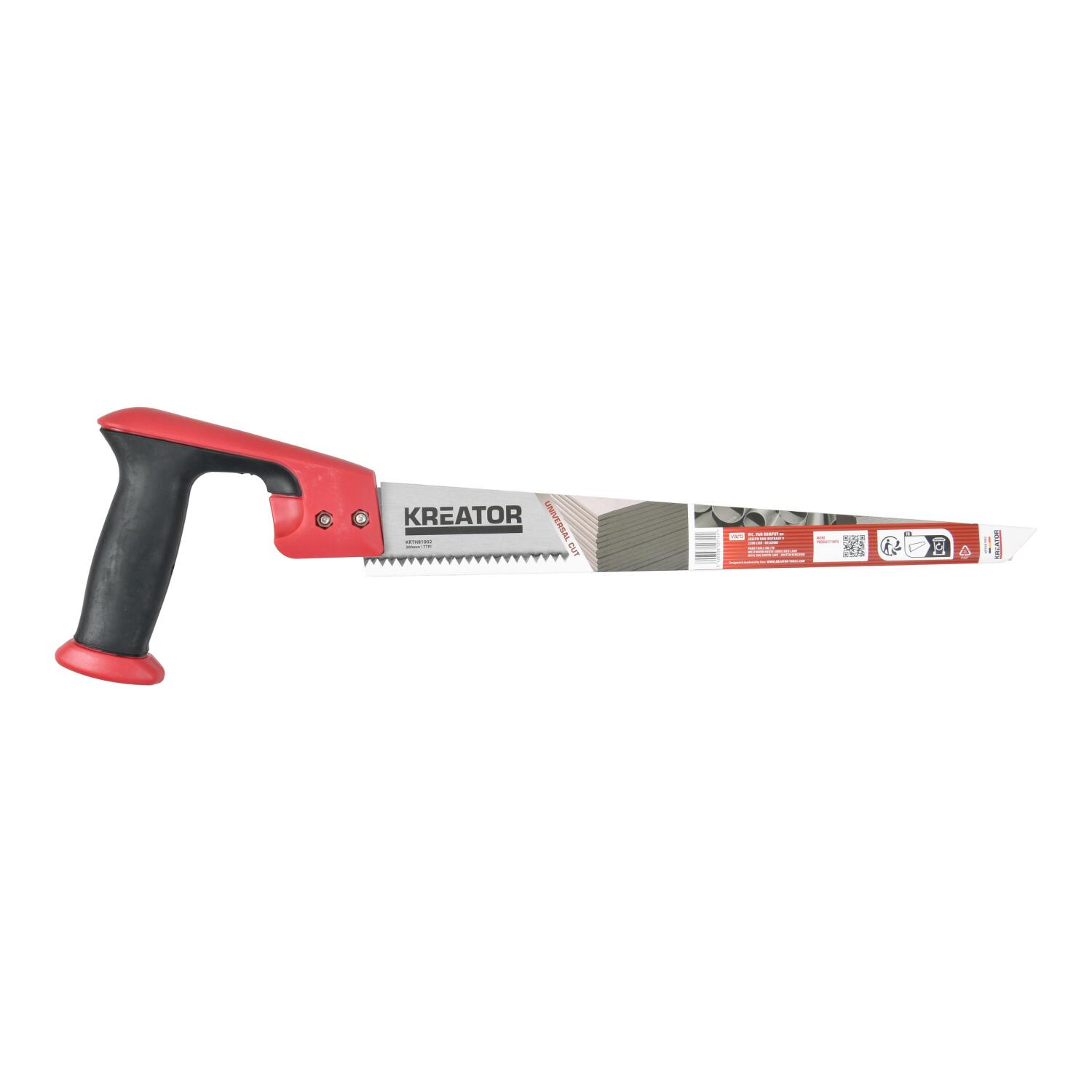 Kompasinis pjūklas KREATOR KRTH81002 300 mm 7 TPI leidžia lengvai pjauti gipso kartoną. Jis yra aprūpintas plieniniu 300 mm ilgio peiliu su itin aštriais dantimis. Šio pjūklo dantys yra sukietinti ir aštrinami trimis skirtingais kampais. Minkštas, neslystantis rankena užtikrina tvirtą suėmimą.