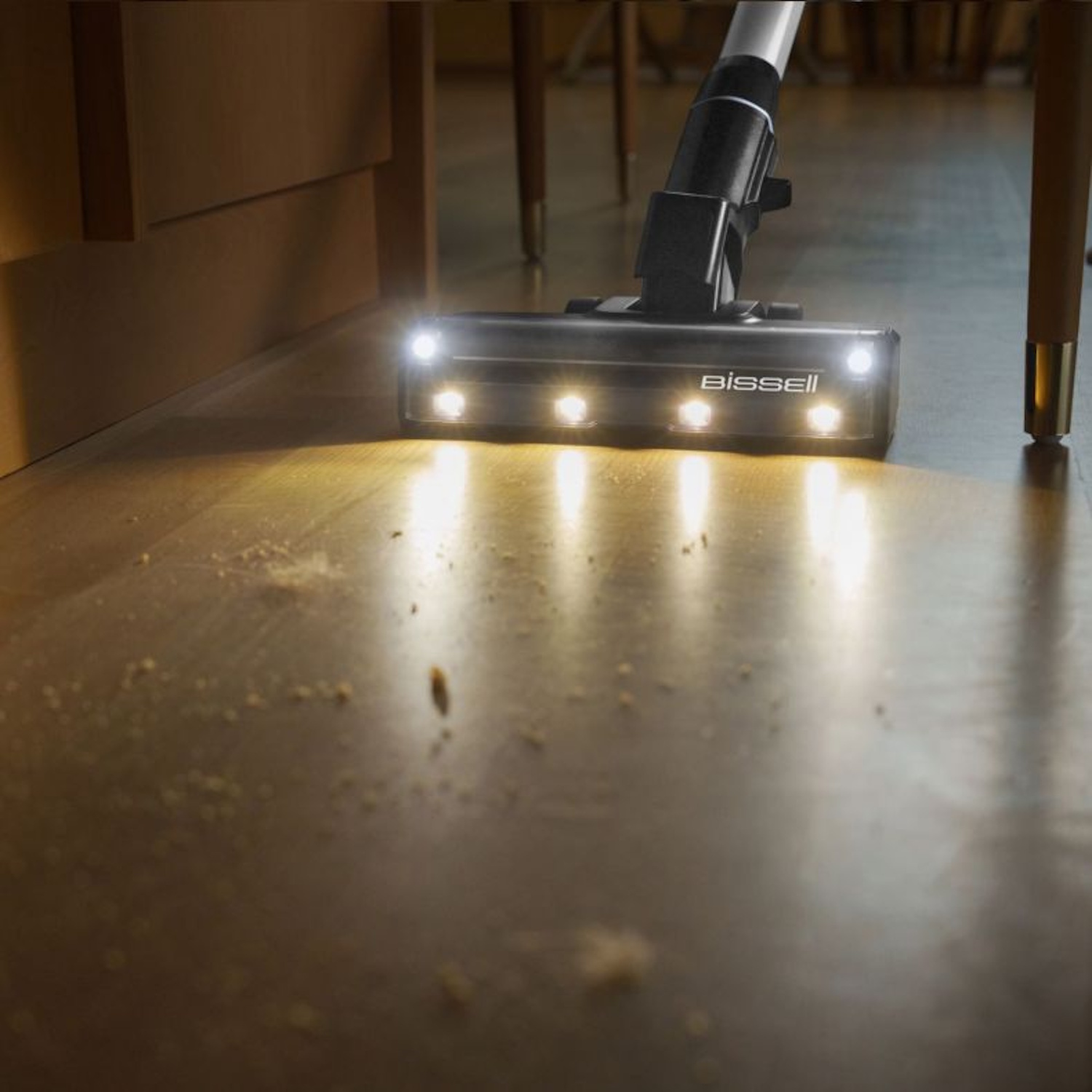 ● LED apšvietimas grindų antgalyje išryškina kailį ir dulkes po baldais ir tamsiuose kampuose.