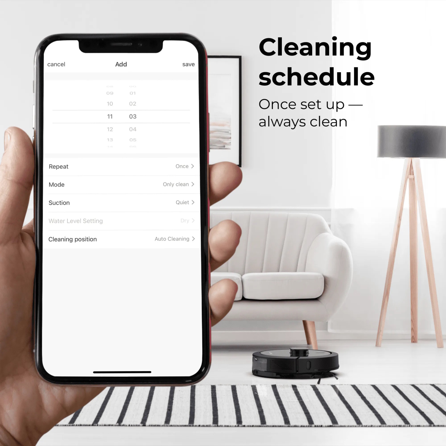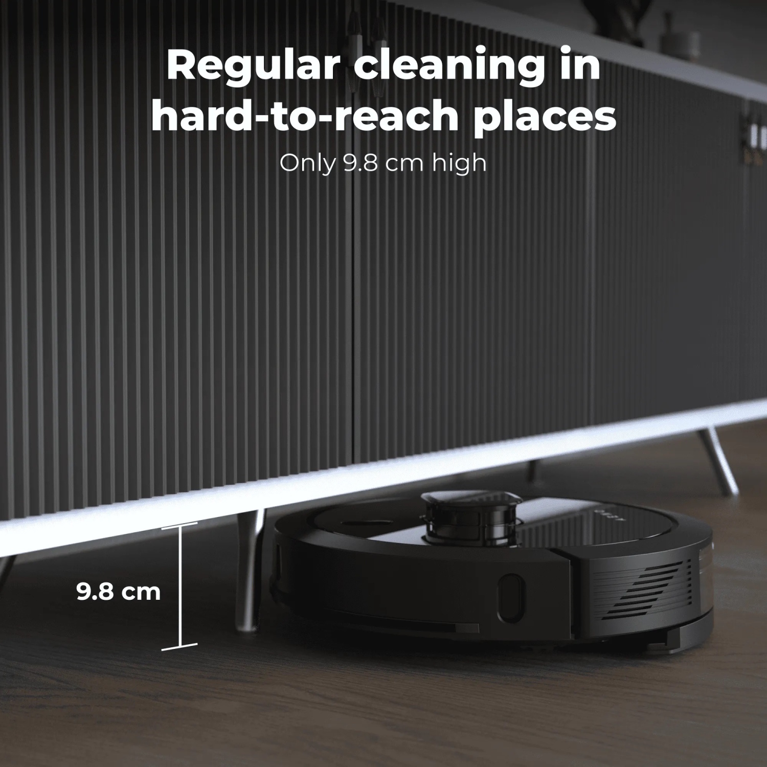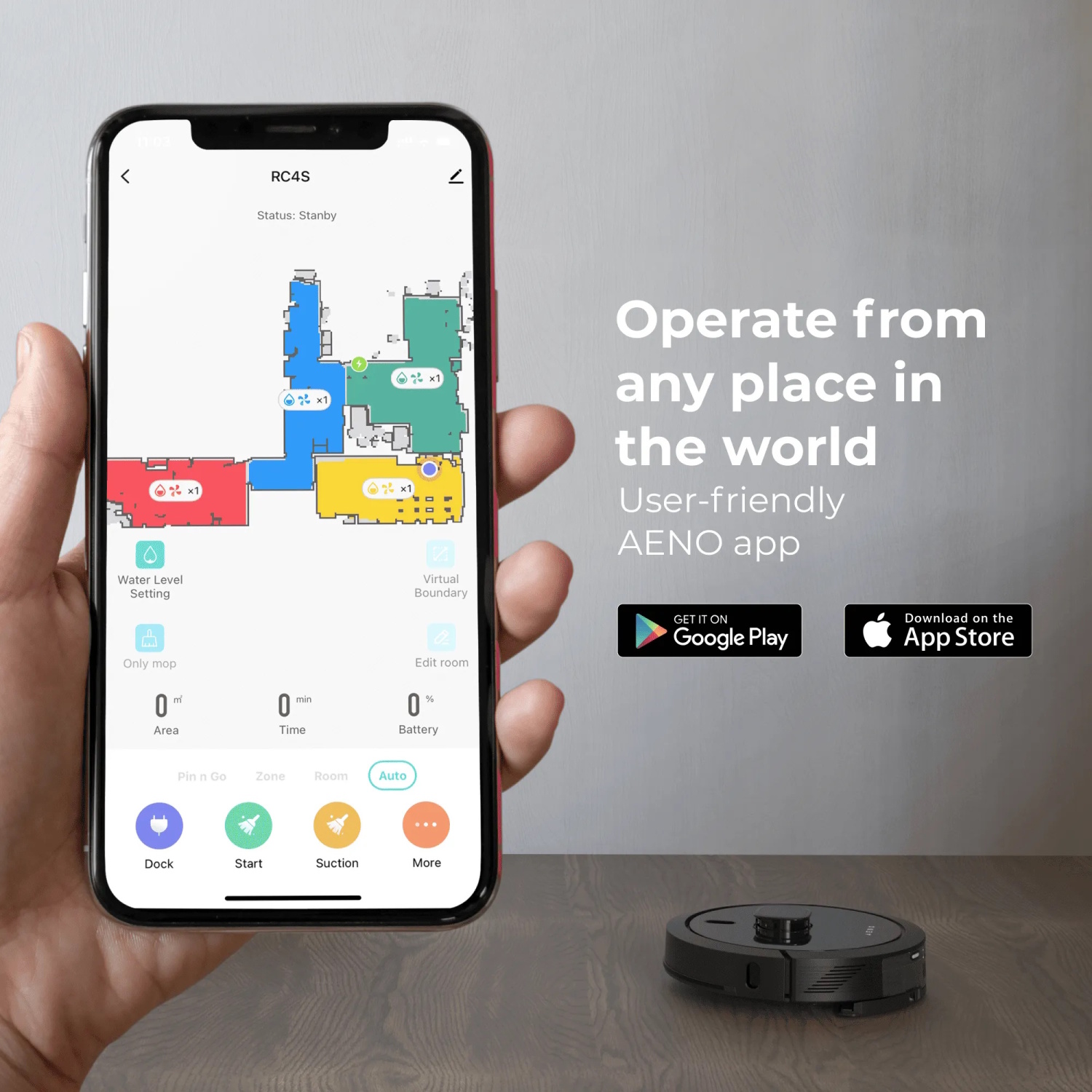 AENO RC7S – tai išmanus robotas dulkių siurblys su pažangia lazerine navigacija, sujungiantis sausą siurbimą ir tikrą drėgną valymą viename įrenginyje. 4 kPa siurbimo galia, iki 250 minučių veikianti 5200 mAh baterija, dviguba 2-in-1 talpa (300 ml vandens + 300 ml dulkių), besisukantys mopai ir 20 jutiklių sistema tiksliam patalpų žemėlapių sudarymui leidžia RC7S efektyviai valyti iki 300 m² plotą. Robotui būdinga išmani scenarijų logika, patalpų skaidymas ir jungimas, virtualios sienos, keturi siurbimo lygiai, automatinis įkrovimas ir valymo tęsimas nuo tos pačios vietos. AENO programėlė suteikia intuityvų valdymą, valymo istoriją, tvarkaraščius ir balso asistentų palaikymą (Siri, Alexa, Google Assistant). Puikus pasirinkimas dideliems namams ir naudotojams, ieškantiems maksimaliai autonomiško valymo.