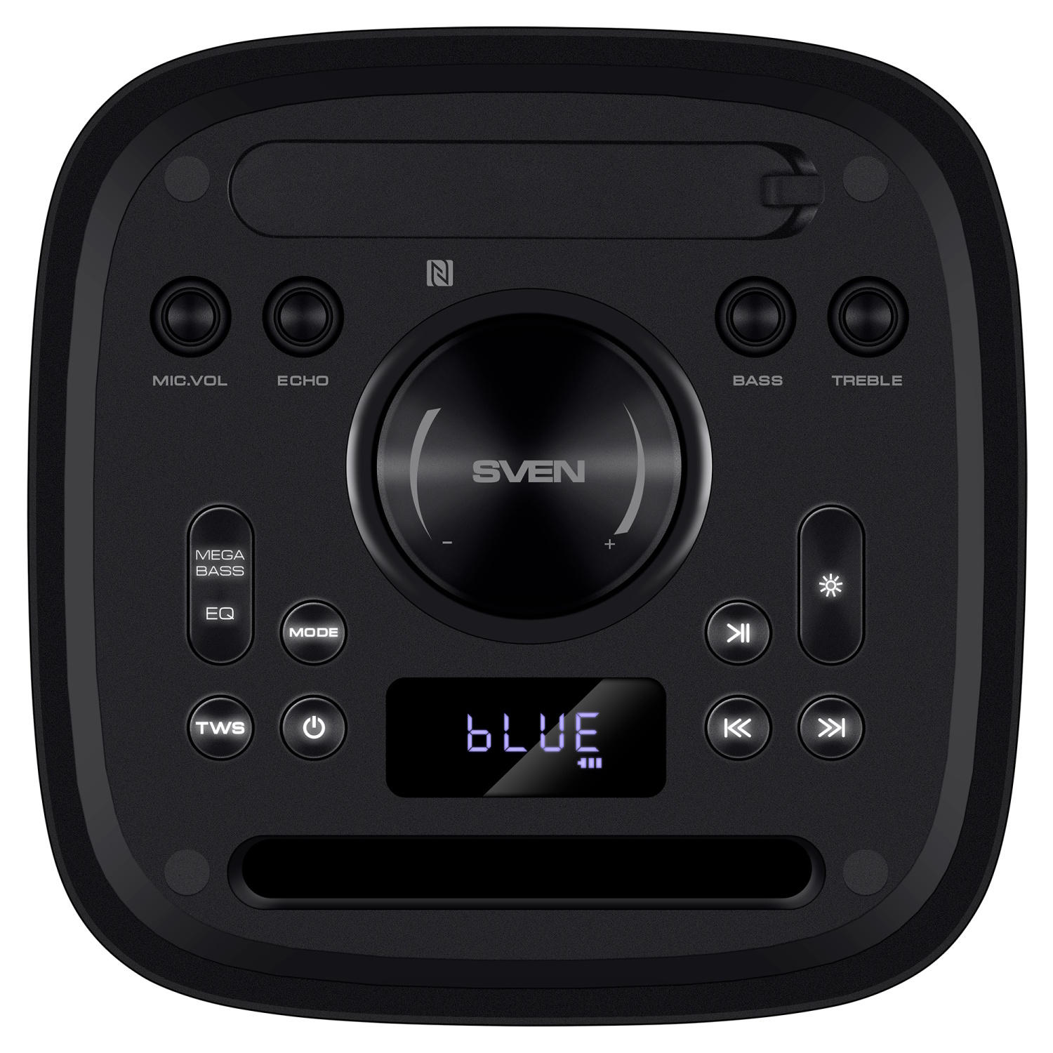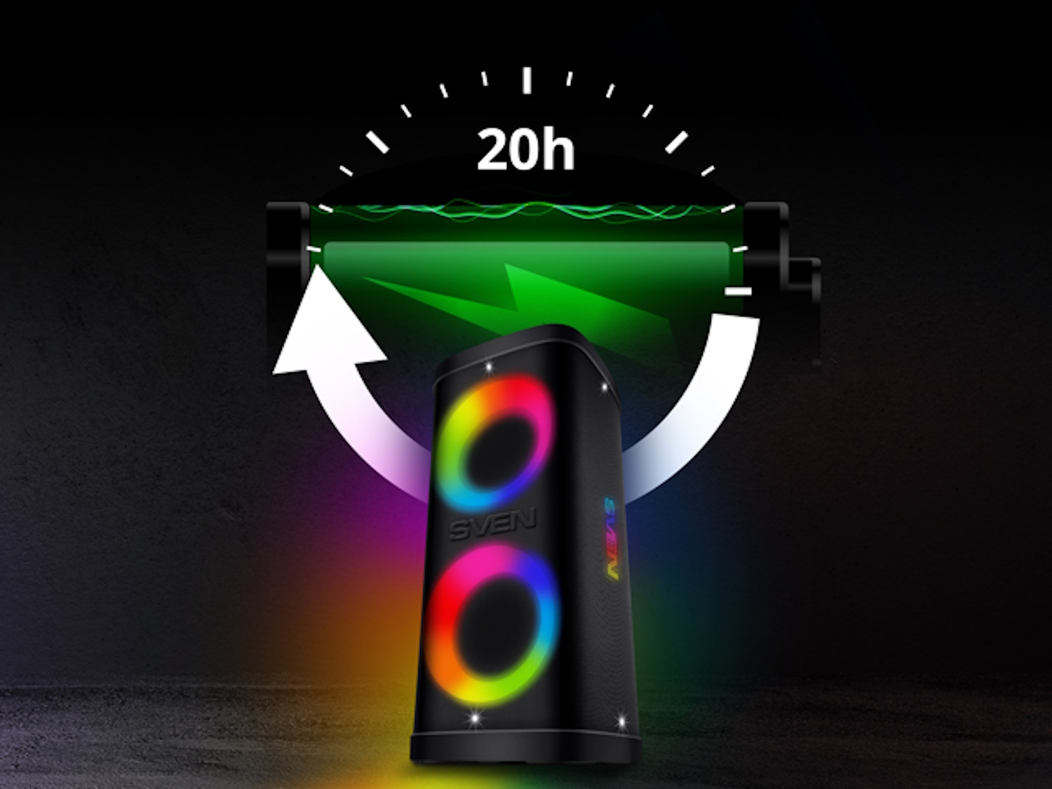 SVEN PS-930 yra galinga nešiojama Party Box tipo garso sistema su stereo garsu, TWS palaikymu ir karaoke funkcija, skirta vakarėliams, šventėms ir ilgalaikiam autonominiam naudojimui tiek patalpose, tiek lauke. 150 W bendra galia (2 × 75 W RMS) kartu su dviejų garsiakalbių sistema užtikrina aiškų, energingą ir patalpas užpildantį garsą.
