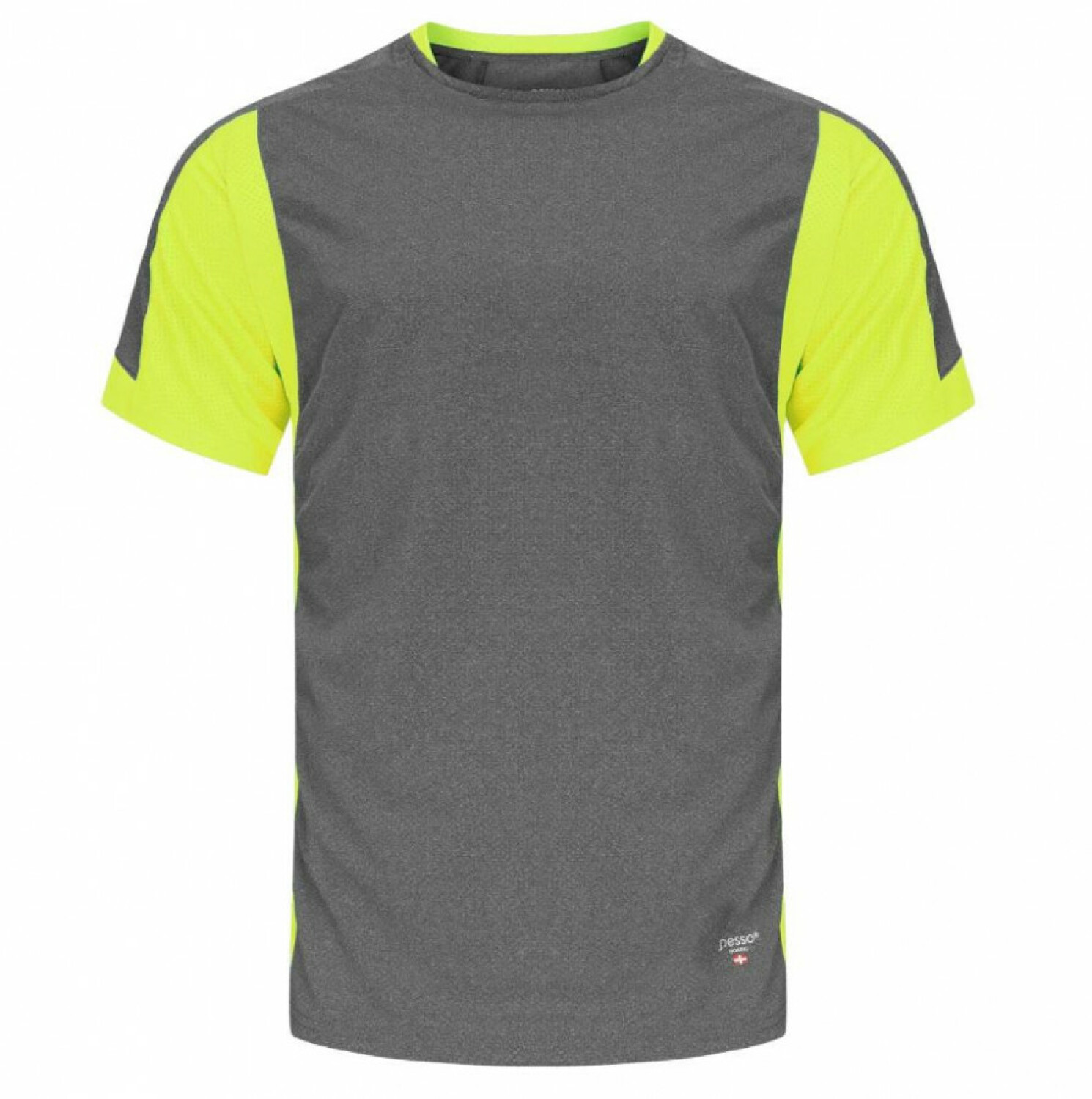 T-marškiniai Breeze, pilki/geltoni, XL, PESSO, yra puikus pasirinkimas norintybes jaustis patogiai ir laisvai. Šie t-marškiniai pagaminti iš kvėpuojančio, greitai džiūstančio terilenio audinio, kuris efektyviai sugeria drėgmę ir palaiko vėsą.