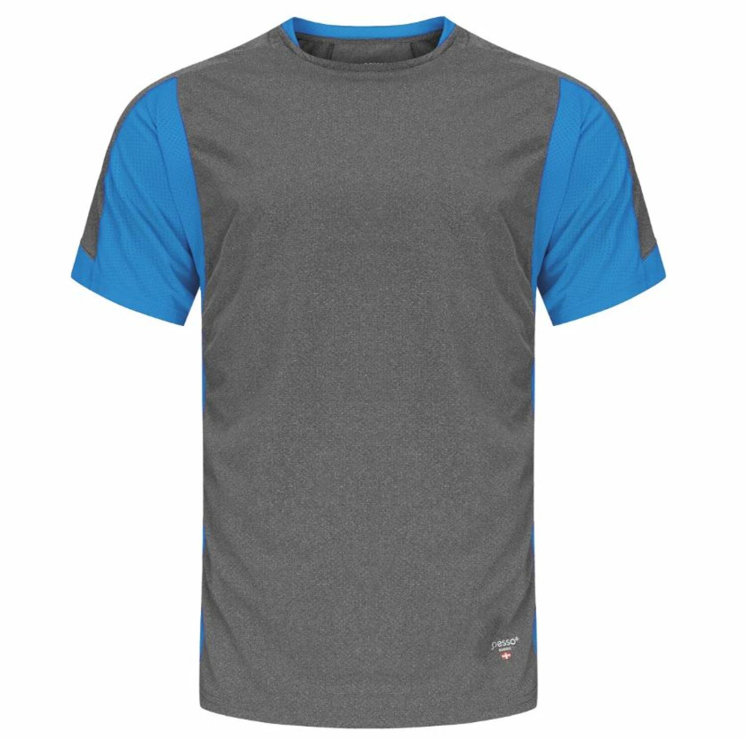 Šie T-marškiniai Breeze, pilki/mėlyni, L, PESSO yra puikus pasirinkimas norintiems komforto ir laisvės judėjimui. Pagaminti iš kvėpuojančio, greitai džiūstančio terileno audinio, jie efektyviai pašalina drėgmę nuo kūno ir išlaiko vėsą.