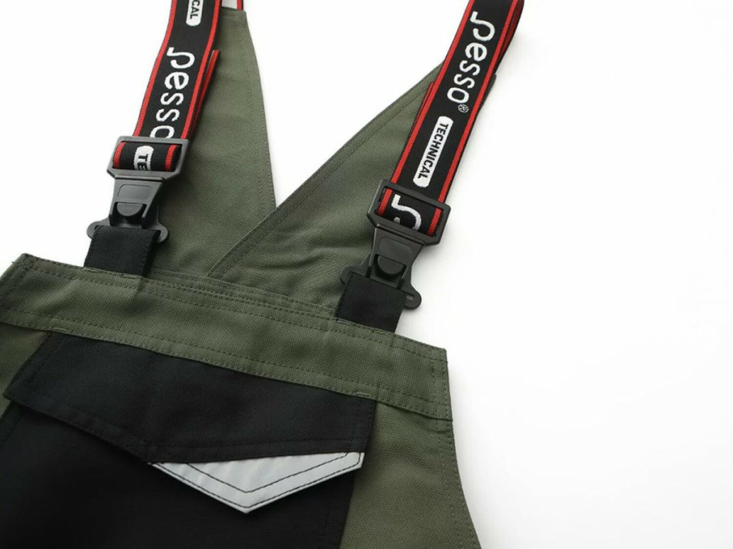 Patogus ir tvirtas PESSO darbo puskombinezonas, sukurtas iš ypatingai atsparios medžiagos, su Cordura® ir 4-Way Stretch elastingų medžiagų elementais, užtikrinančiais geresnę judėjimo laisvę.
