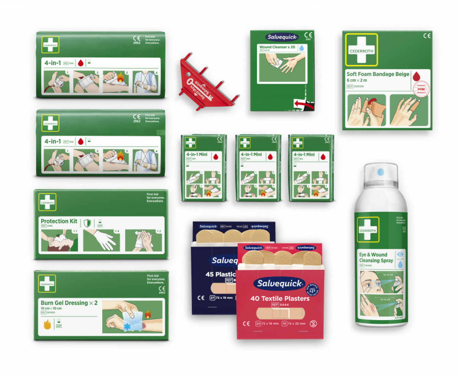 Cederroth papildinimo rinkinys, skirtas pirmosios pagalbos priemonių stendui 51011026&CEDER, yra puikus sprendimas, užtikrinantis greitą ir efektyvų pagalbos teikimą. Rinkinys apima visus būtinus elementus, kaip akies ir žaizdų valymo purškiklis bei gelinis tvarsčio variantas nudegimams gydyti.