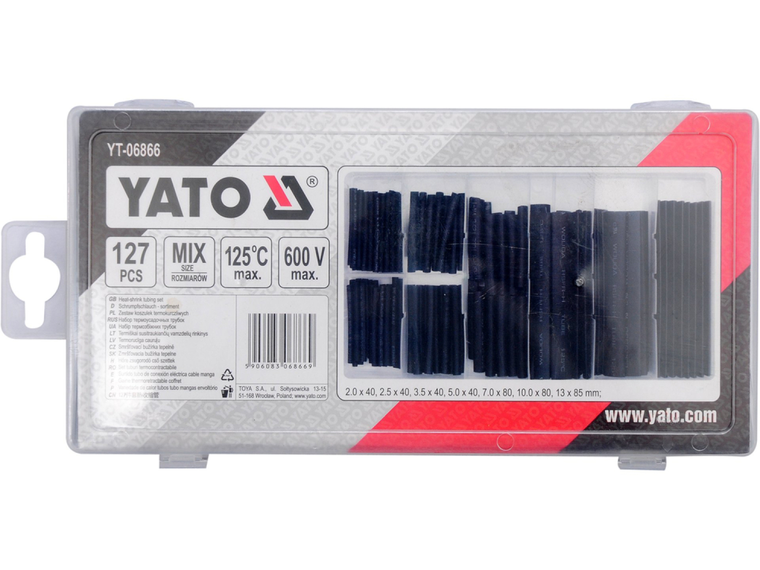Termo šiaudelių komplektas YATO YT-06866 skirtas elektriniams prietaisams. Šis rinkinys apima 127 vienetus skirtingų skersmenų ir ilgų šiaudelių, kurie puikiai tinka šilumos izoliacijai.