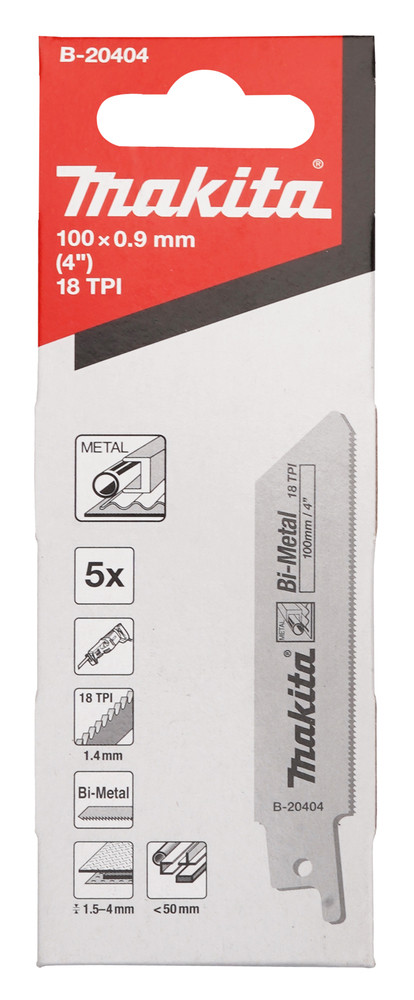 Tiesinio pjūklo pjūkleliai BiM 100x0,9mm (18tpi), 5Vnt., Metalui 1,5-4mm, 5Vnt, vamzdžiams <50mm B-20404 MAKITA