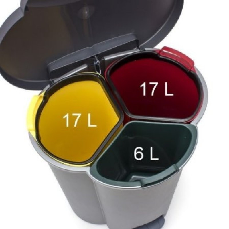 Šiukšliadėžė atliekų rūšiavimui Trio 40L (2x17 + 6L) sidabrinis / tamsiai pilkas 0803942877 CURVER