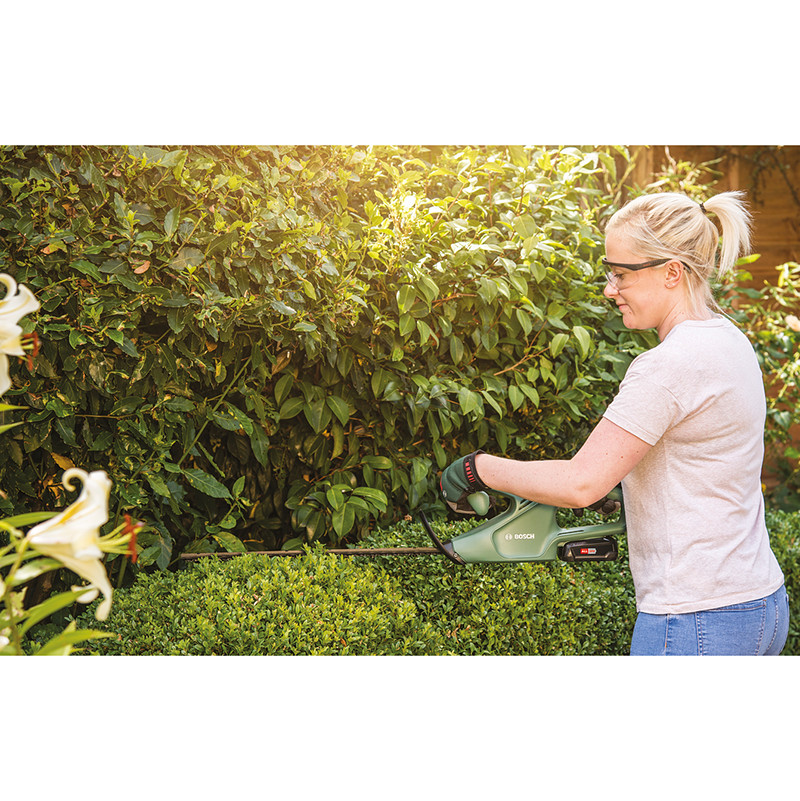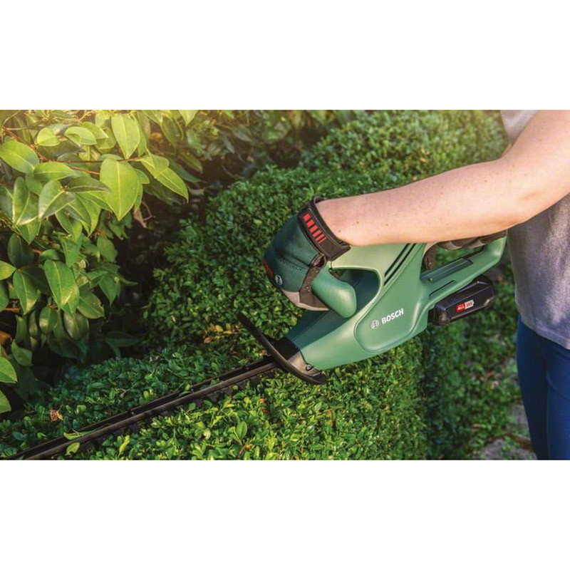 „EasyHedgeCut 18-45“ puikiai tinka mažų ir vidutinio dydžio gyvatvorių priežiūrai ir karpymui. Išskirtinai lengvas, 2,3 kg svorio ergonomiškas įrankis yra patogus valdyti įvairiose darbo padėtyse, todėl dirbant ilgai sumažinama apkrova viršutinei kūno daliai. 18 V ličio jonų akumuliatorius suteikia optimalią galią, o „Bosch“ antiblokavimo sistema suteikia galimybę sklandžiai, patikimai ir nepertraukiamai dirbti bei nesibaiminti dėl strigimo. Laisvė judėti sode be laidų – jokių apribojimų ir baimės nupjauti maitinimo laidus. Įrankis priklauso „POWER FOR ALL ALLIANCE“. Vienas akumuliatorius gali būti naudojamas įvairiems skirtingų gamintojų įrankiams.