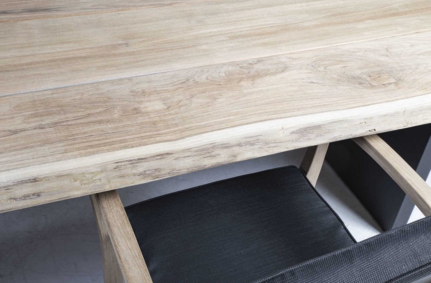 Sodo stalas ROYAL 290x100xH76cm, stalo paviršius: tikmedis, apdaila: senovinis, neteptas, aliuminio kojelės, spalva: pilka