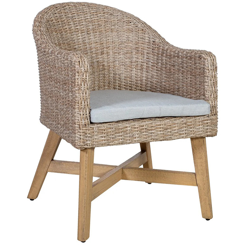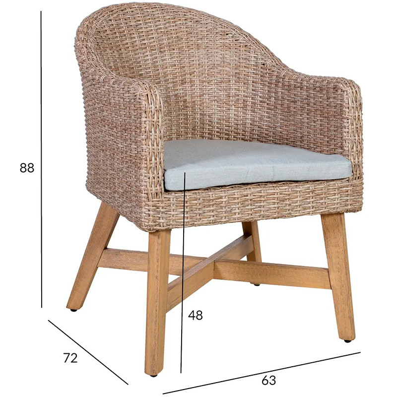 Sodo kėdė HENRY su pagalvėle 63x72xH88cm, aliuminio rėmas su plastikine vytele, smėlio spalvos, kojos: eukalipto medis 10243 HOME4YOU