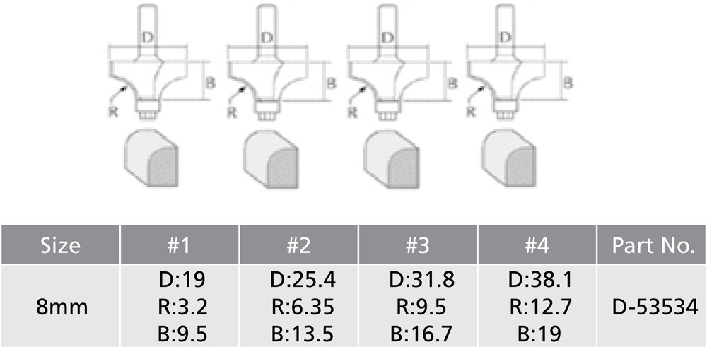Frezų komplektas 4 dalių, 8 mm D-53534 MAKITA