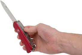 | Funkcija | Žirklės; Dideli peilio ašmenys; Atsuktuvas (5 mm); Vielos apvalkalo valiklis; Pjūklas medienai; Skardinių atidarytuvas; Atsuktuvas (3 mm); Ilenas; Kamščiatraukis; „Phillips“ atsuktuvas (0/1 "); Pincetai; Dantų krapštukas |