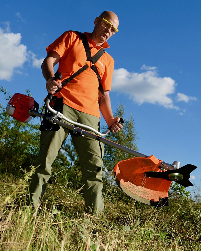 Complete with:: trimmer head, cutting saw blade, shoulder strap