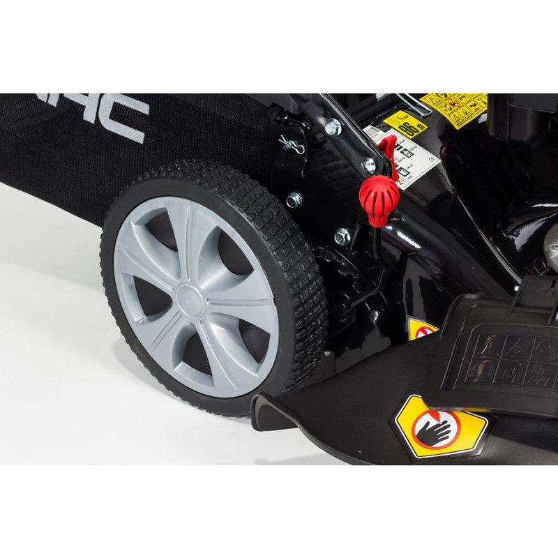 Patogi centrinė pjovimo aukščio reguliavimo rankena leidžia lengvai nustatyti norimą pjovimo aukštį septyniais žingsniais nuo 25 mm iki 75 mm.