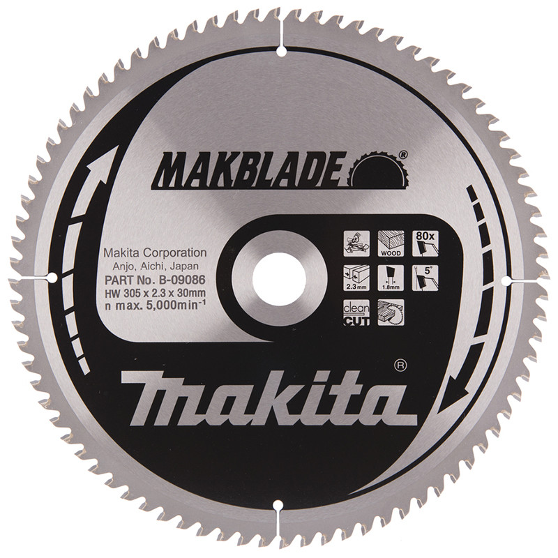 Pjūklo diskas 305x30x2,3mm, 5°, T80, MAKBLADE B-09086 MAKITA