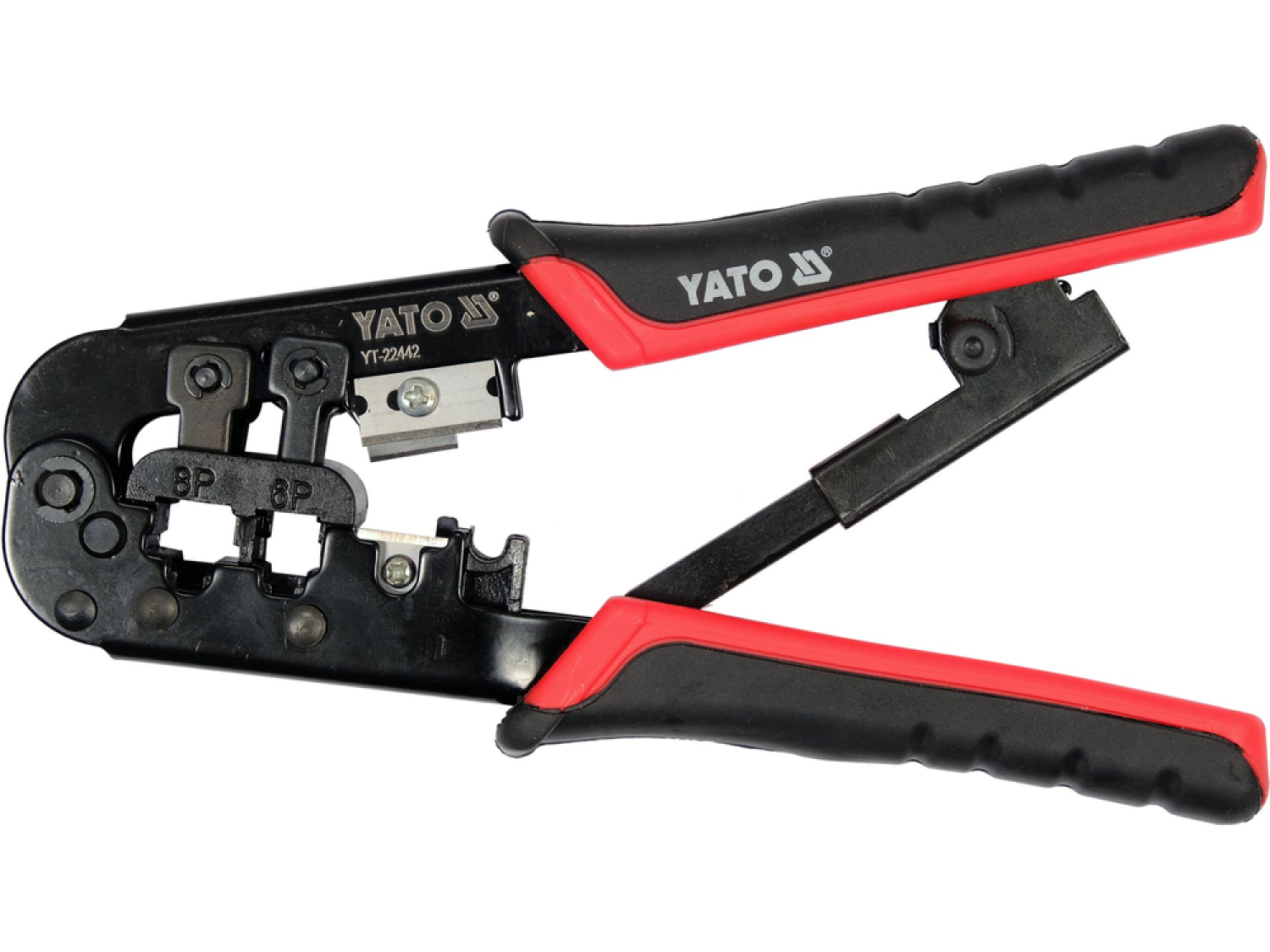 Tinklo antgalių replės YT-22442 su veržimo mechanizmu, skirtos telefonų ir tinklo terminalų presavimui. Replės pagamintos iš anglies plieno, kuris buvo apdorotas oksidacijos procesu, kad apsaugotų nuo korozijos. Dviejų komponentų plastikiniai rankenų dangteliai. Kietesnė PP dalis tvirtai laikosi ant korpuso, tuo tarpu TPR išorinis sluoksnis malonus liesti ir turi neslystančių savybių.