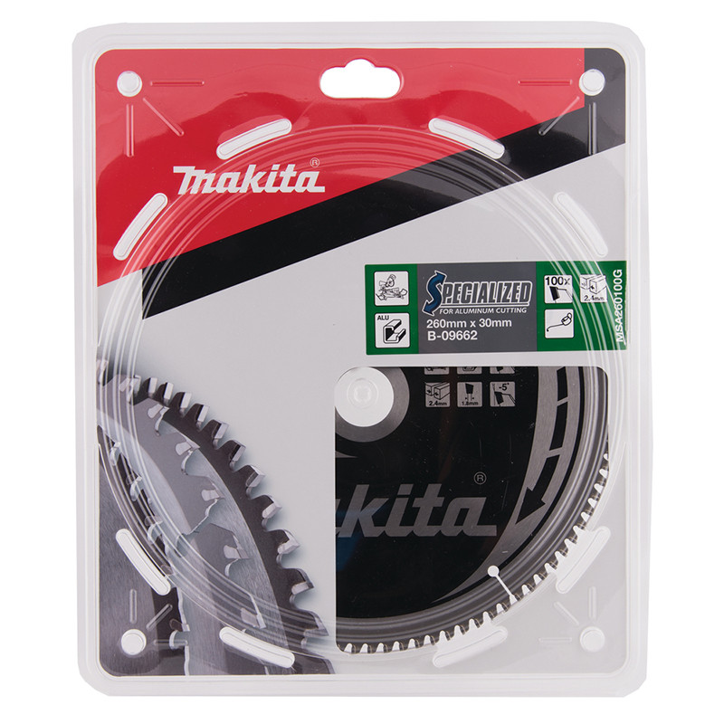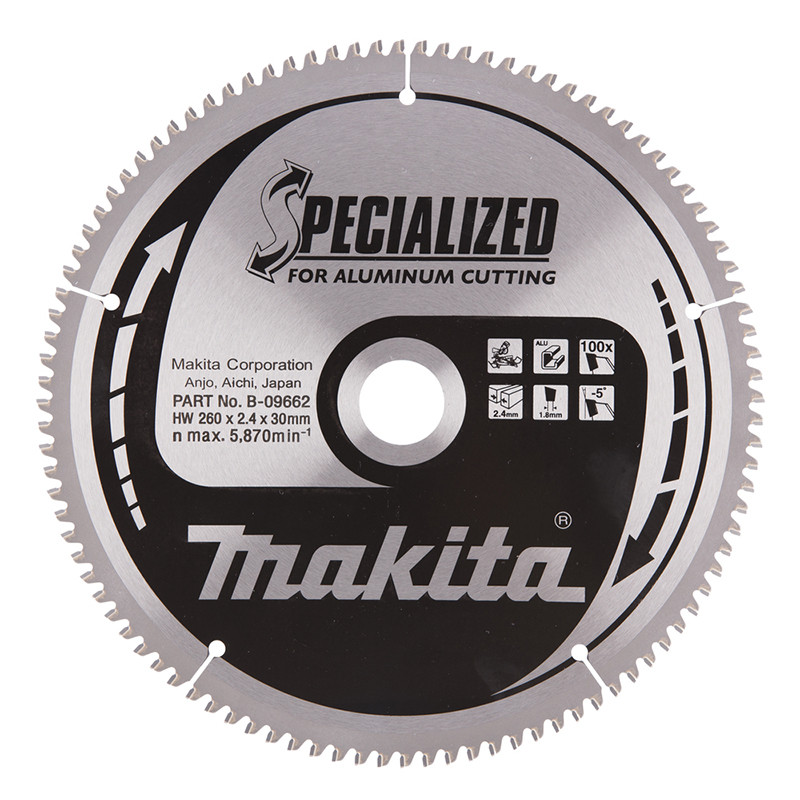 Pjūklo diskas aliuminio 260x2,4x30mm, -5°, T100, TCT SPECIALIZED B-09662 MAKITA