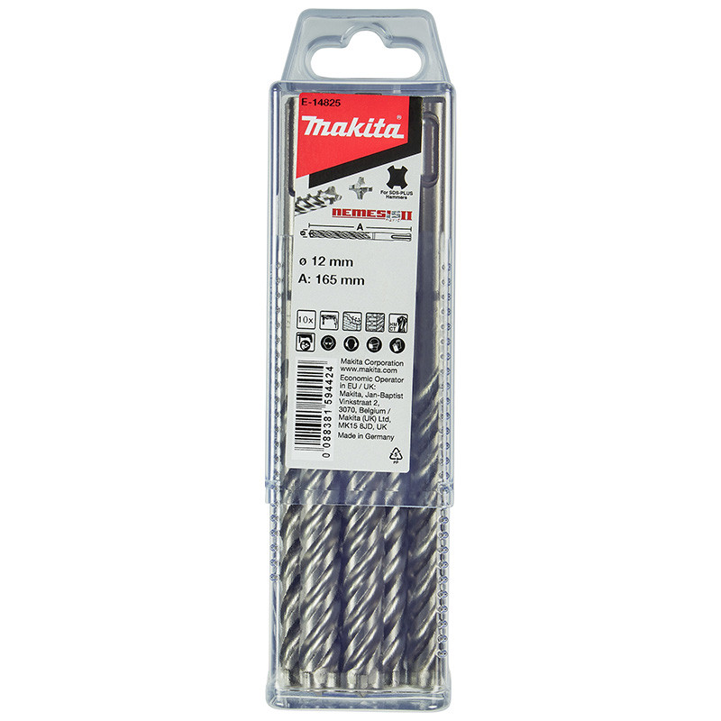 Grąžtas betonui SDS-PLUS 12x100/165mm 10 vnt. NEMESIS 2 E-14825 MAKITA