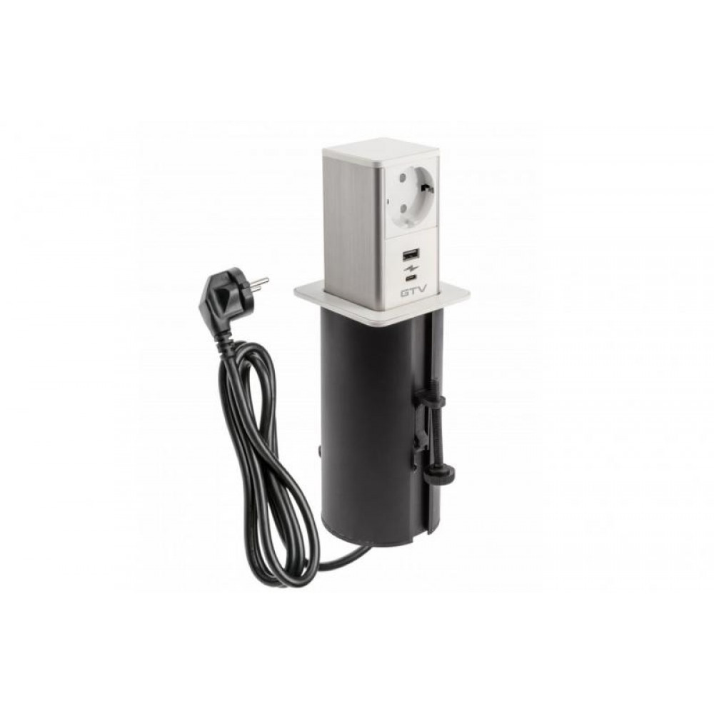 Stalinis įmontuotas lizdas, 1x schuko, 1xUSBA, 1xUSBC, 1,5m, baltas, AE-GMW1STOW-10 GTV