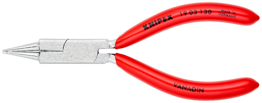 Apaļo knaibu ar griešanas malu, KNIPEX, 19 03 130, precīzi izstrādātas, 130 mm, hromētas, ideāli piemērotas smalku vadu apstrādei.