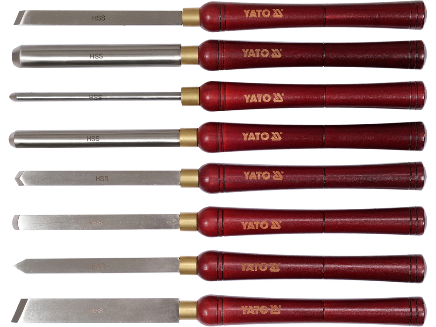 Набор инструментов для токарной обработки дерева от бренда YATO. Лезвия изготовлены из быстрорежущей стали HSS 4341. Ручки из бука, усиленные латунными элементами. Набор упакован в деревянный кейс.