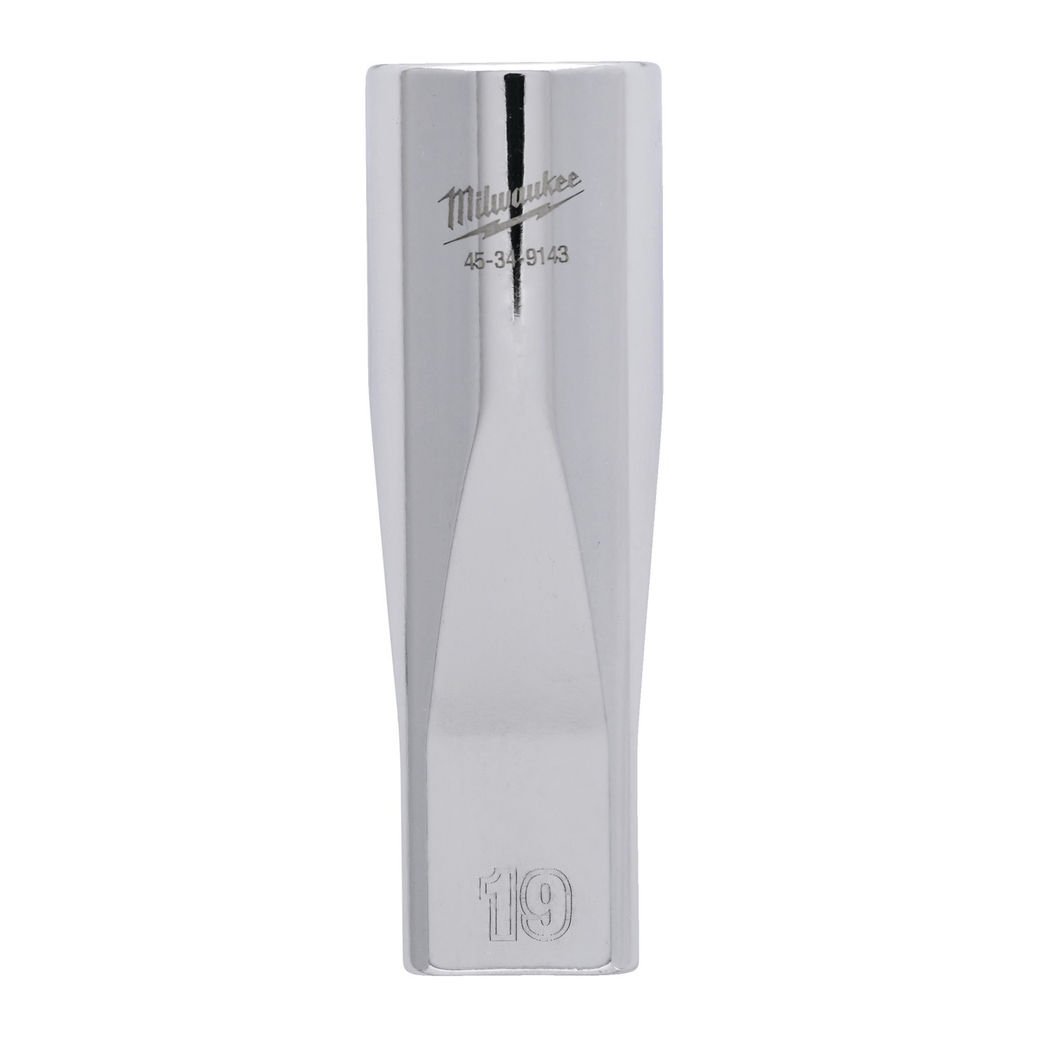½″HROMĒTI UZGRIEŽŅU SKRŪVĒŠANAS UZGAĻI AR ČETRIEM PLAKANIEM™ SĀNIEM, 1/2 DRIVE SOCKET METRIC DEEP - 19 MM, 4932480039 MILWAUKEE