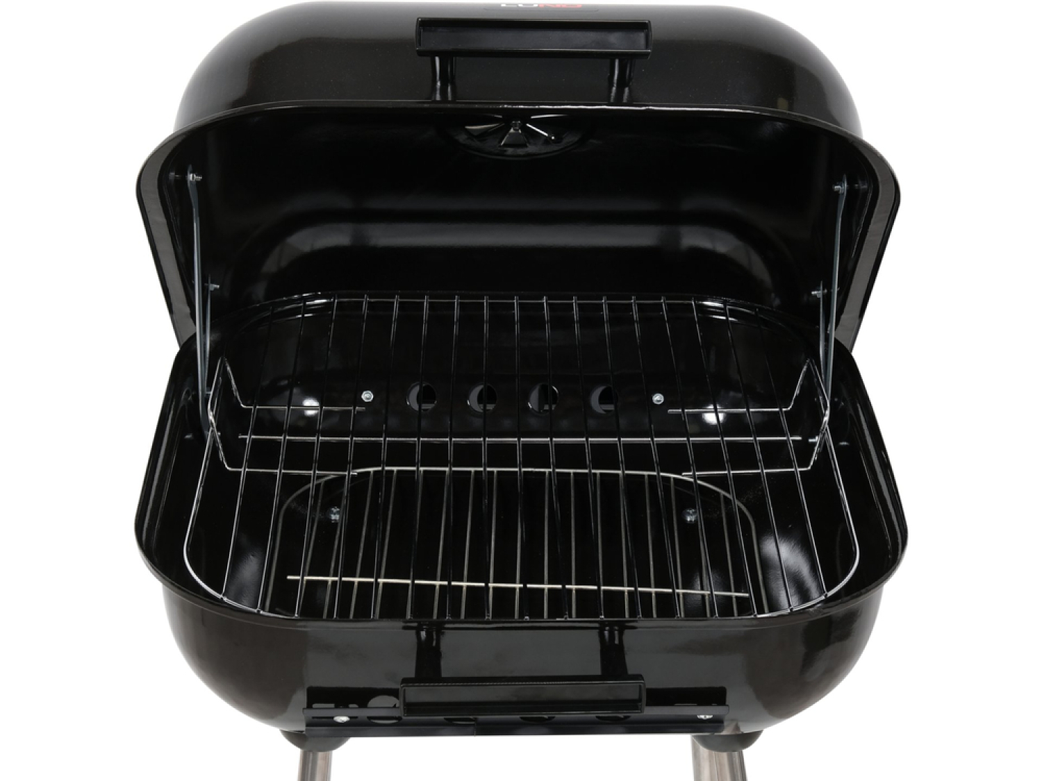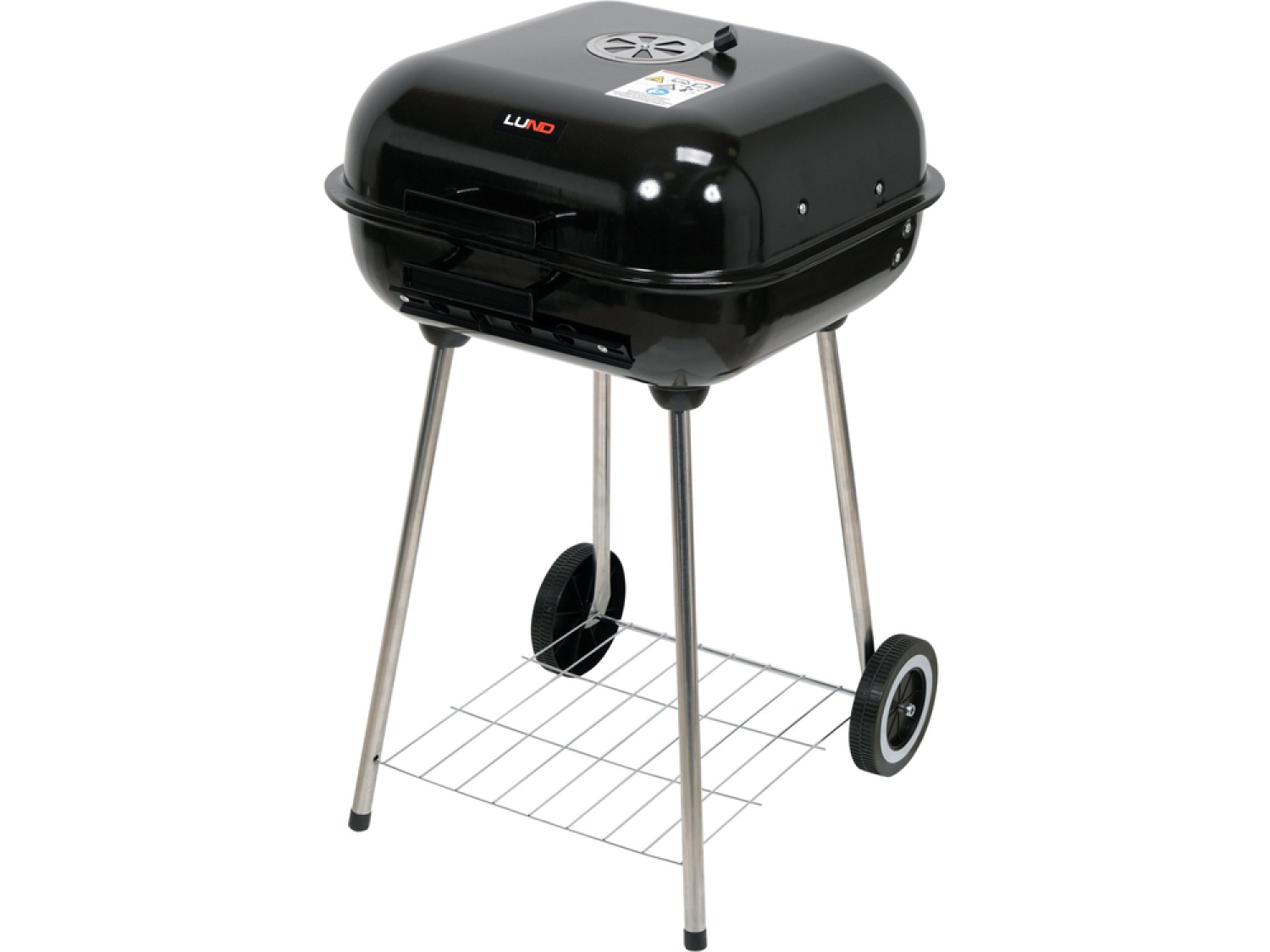 Угольный гриль LUND с крышкой и решеткой размером 45x40 см. Этот портативный гриль выполнен из порошково окрашенной стали и оснащен хромированной решеткой. Он имеет систему контроля циркуляции воздуха через два вентиляционных отверстия - в крышке и в очаге. На нижней сетчатой полке можно хранить уголь и аксессуары.