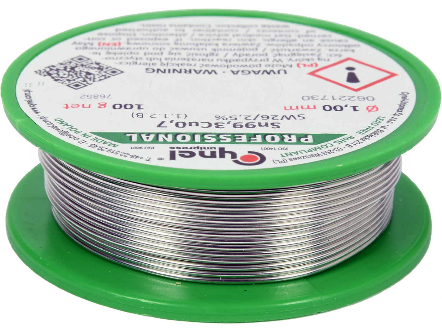 Профессиональный безоловный паяльный материал с флюсом в сердцевине, соответствует PN EN 29453:2000.