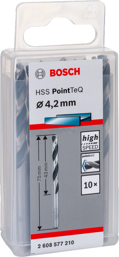Urbis metālam PointTeQ 4,2 x 43 x 75 mm, 10 gab., Urbjmašīnām/skrūvgriežiem POINTTEQ HSS SPIRĀLVEIDA URBIS, 2608577210 BOSCH